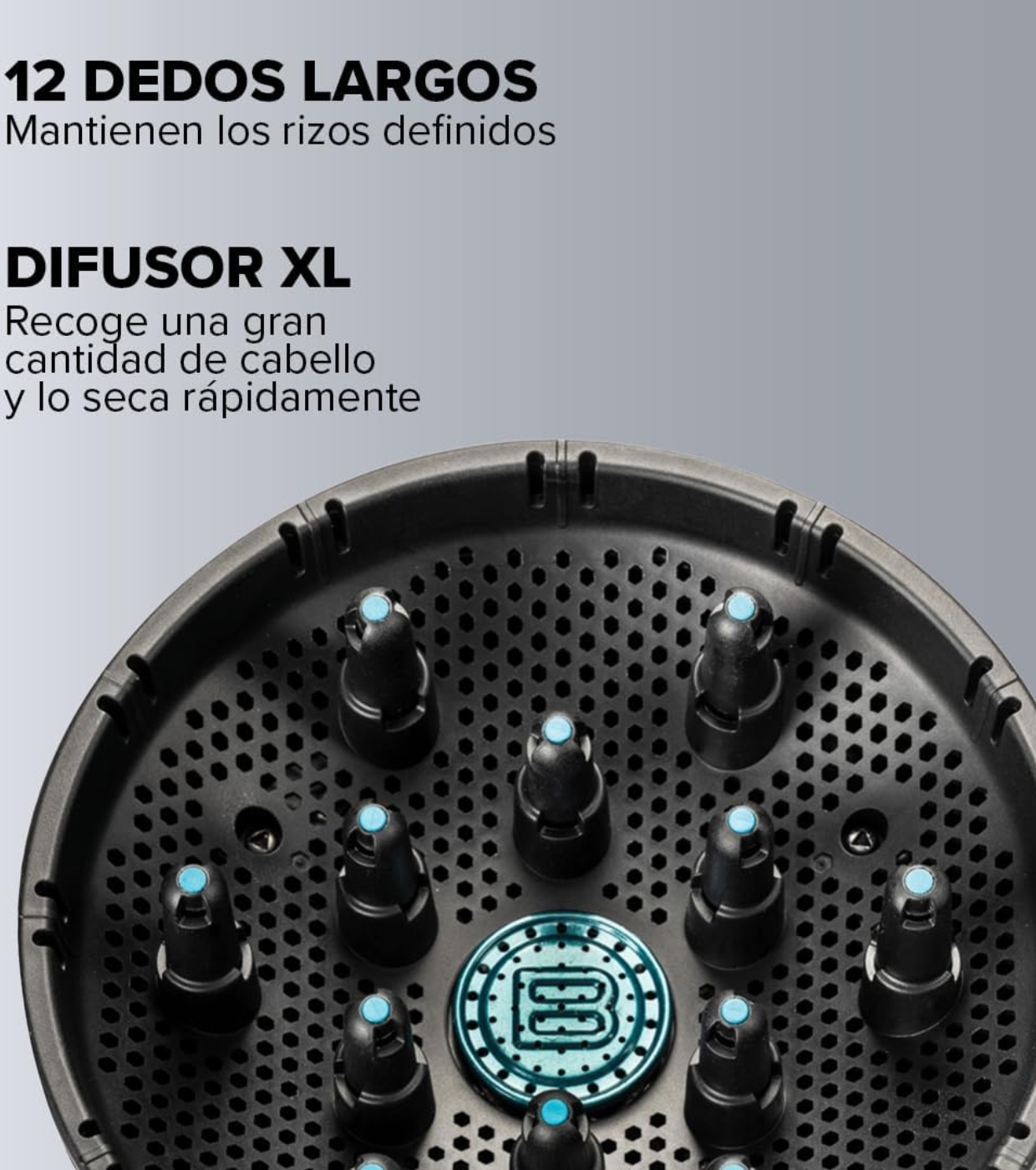 Com um difusor XL, 12 pontas longas e controle digital de calor 50 vezes por segundo, é perfeito até para cachos longos e delicados.