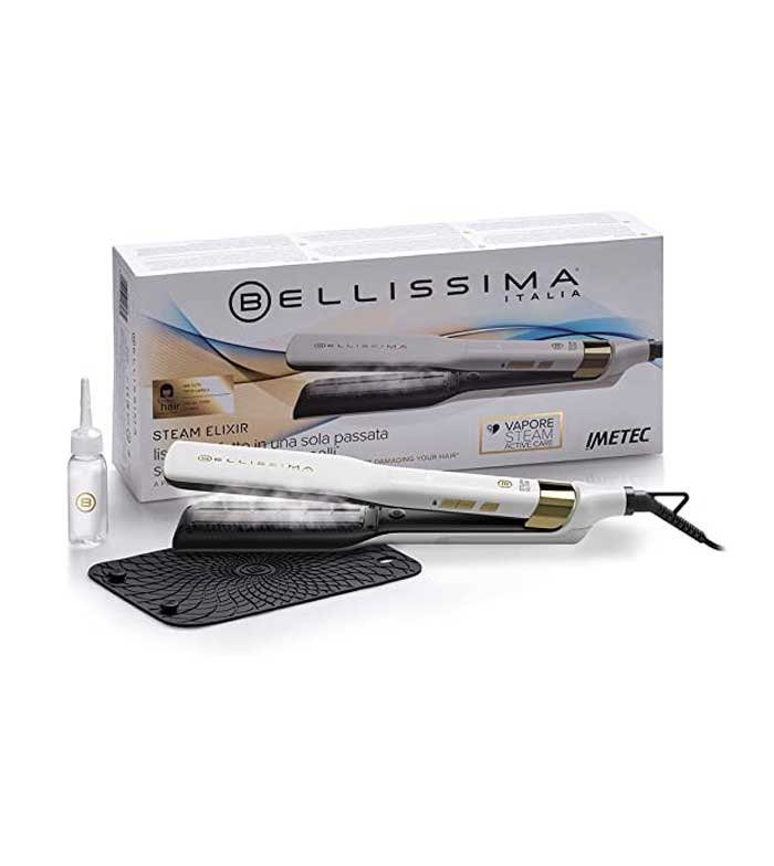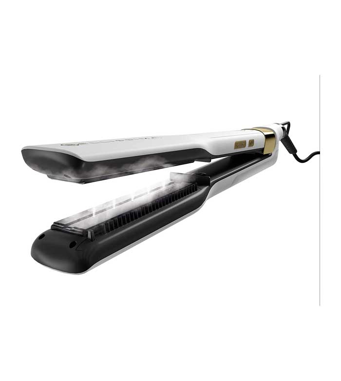 O revolucionário ferro a vapor profissional Steam Elixir mantém a hidratação correta do cabelo e protege-o durante o alisamento, garantindo um alisamento perfeito em uma única passagem e sem danificá-lo