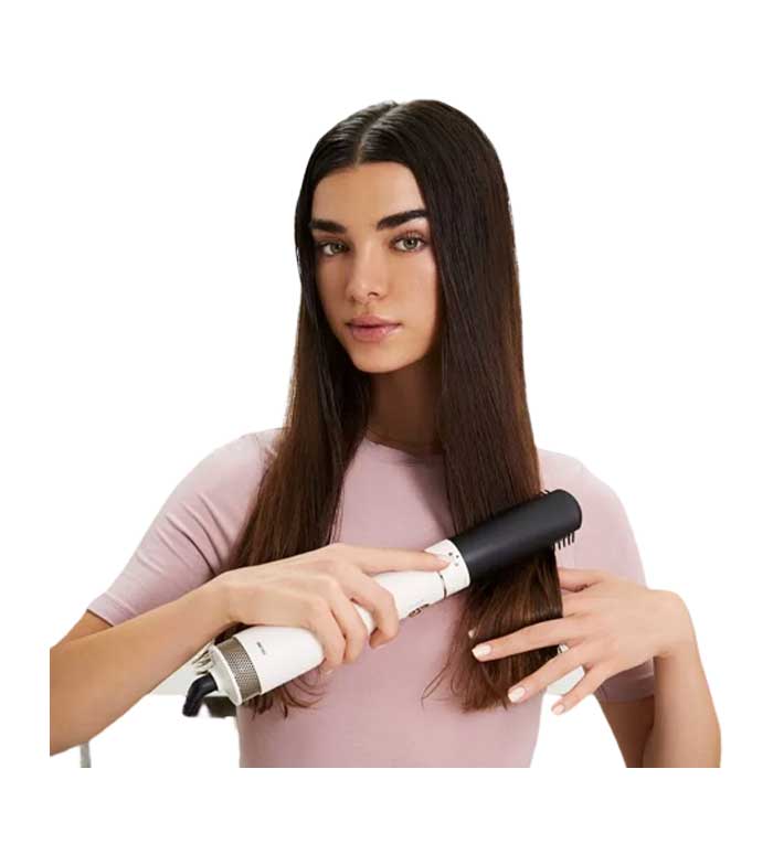 A escova redonda de 50mm Straight&Wavy é ideal para cabelos longos: o efeito é macio e ondulado, e o cabelo fica protegido por cerâmica e queratina.
