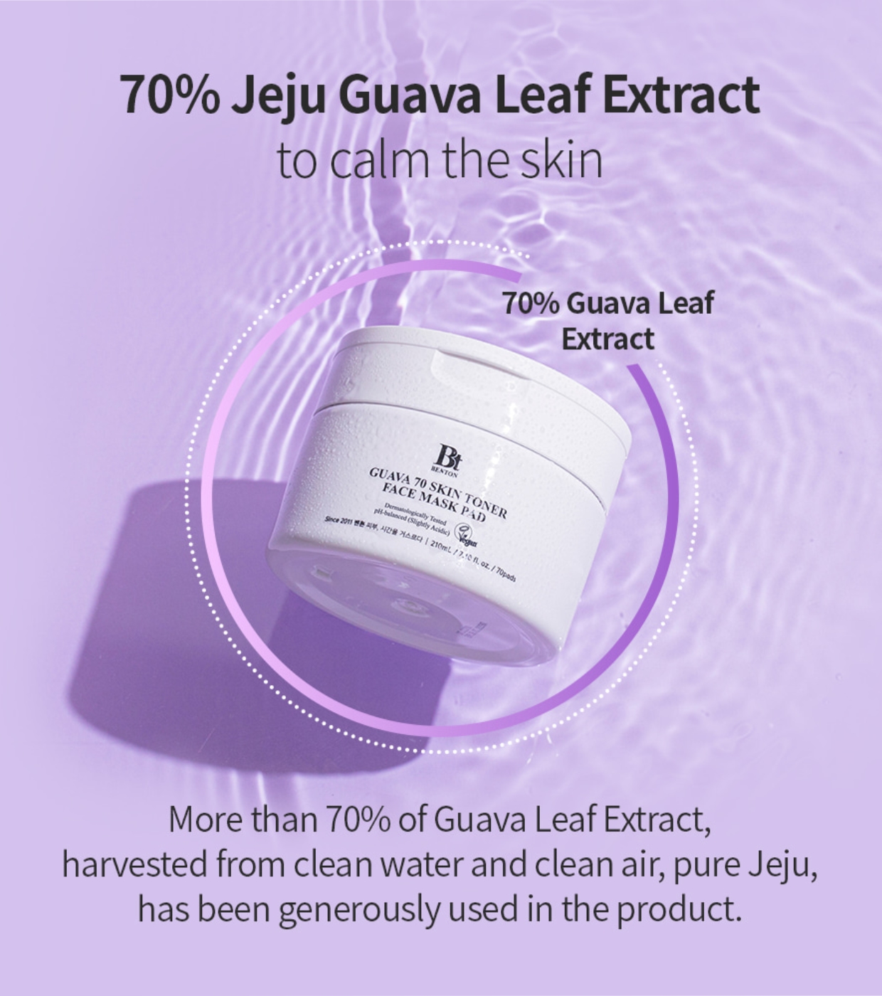 Como ingrediente principal do toner, encontramos Extrato de Folha de Goiaba 70% Jeju, ingrediente com propriedades antioxidantes e calmantes que ao mesmo tempo melhora a hidratação da pele.