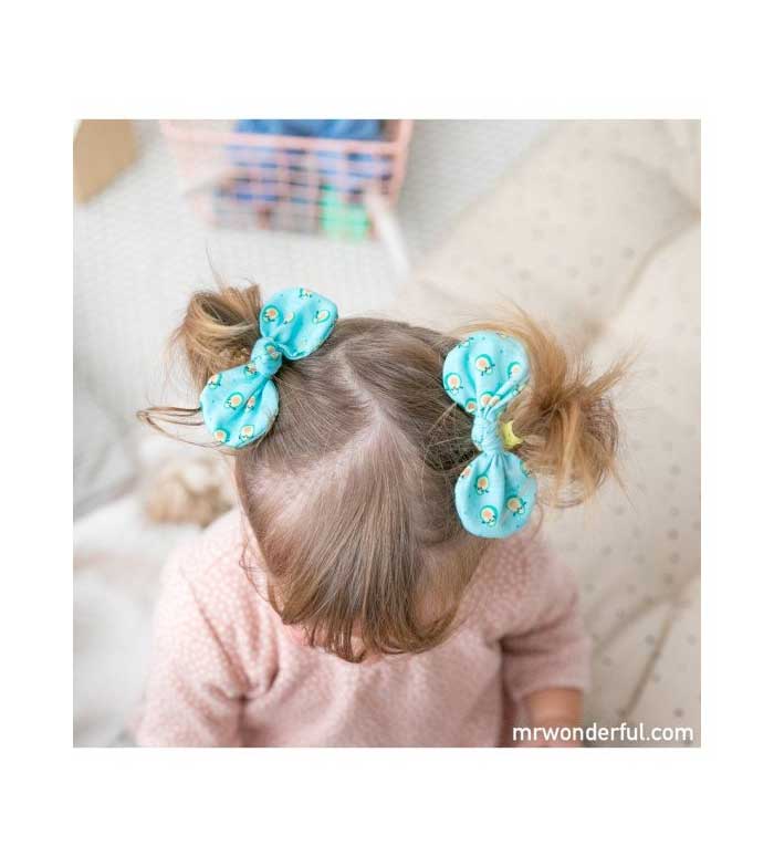 Dois elásticos azul claro estampados com engraçados abacates sorridentes, ideais para dar cor aos updos ou tranças dos mais pequenos.