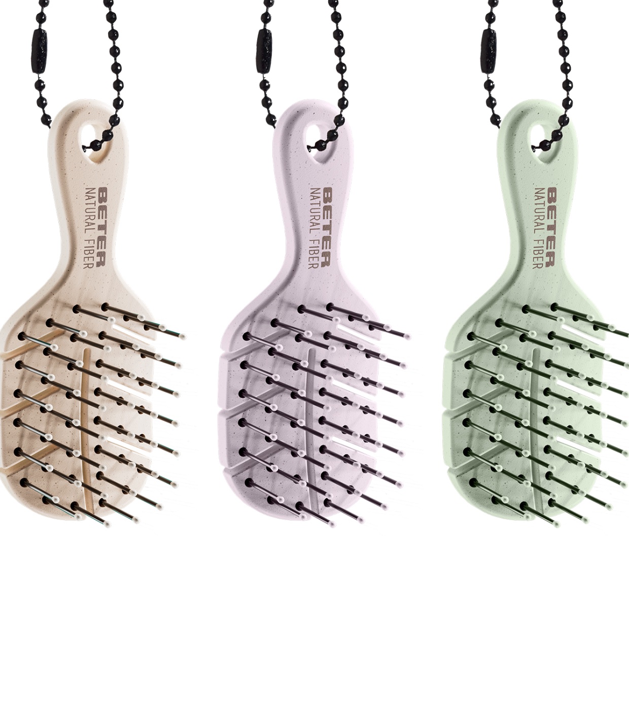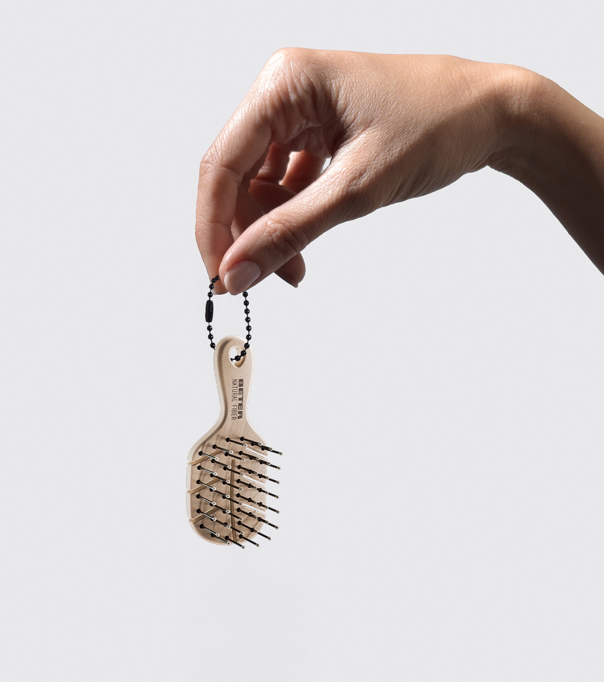 A versão mini e adorável da escova Natural Fiber da Beter chegou! Tão eficaz quanto irresistível, esta escova em formato XSS é a aliada perfeita para desembaraçar suavemente o cabelo sem puxá-lo, onde quer que você esteja.