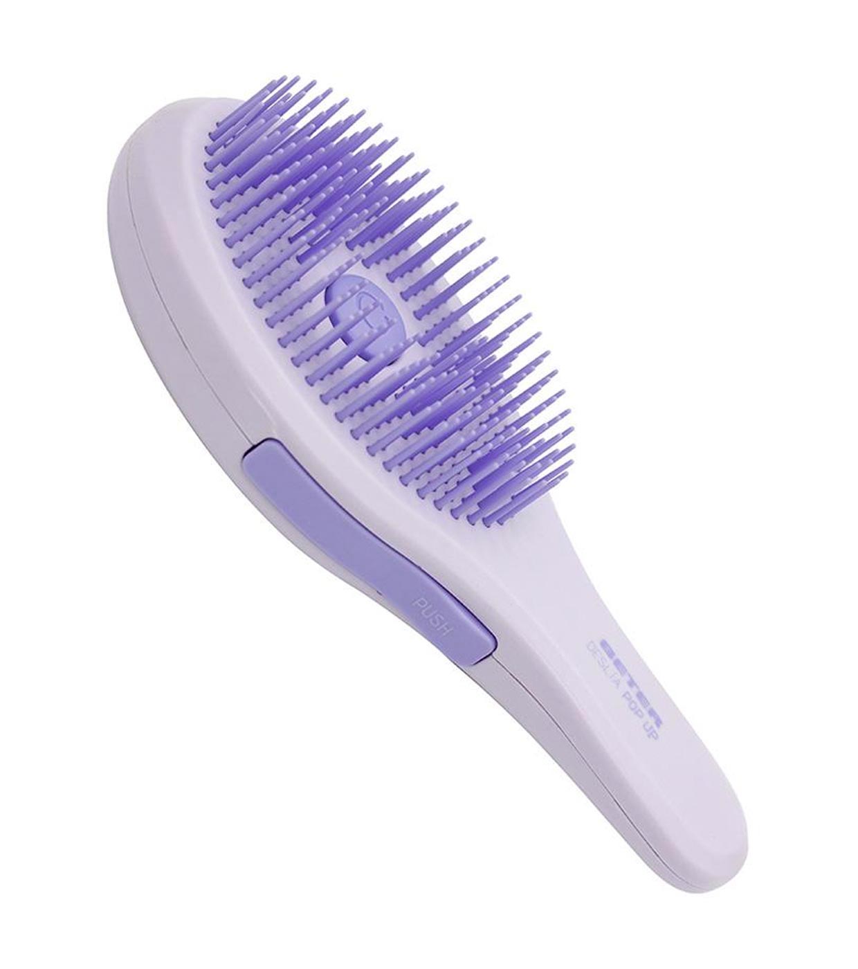 Agora será tão fácil quanto apertar os botões laterais de seu DeslÃa Pop up e seus picos sairão, você poderá desembaraçar suavemente seu cabelo.
