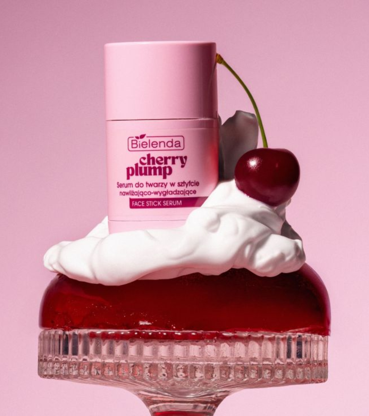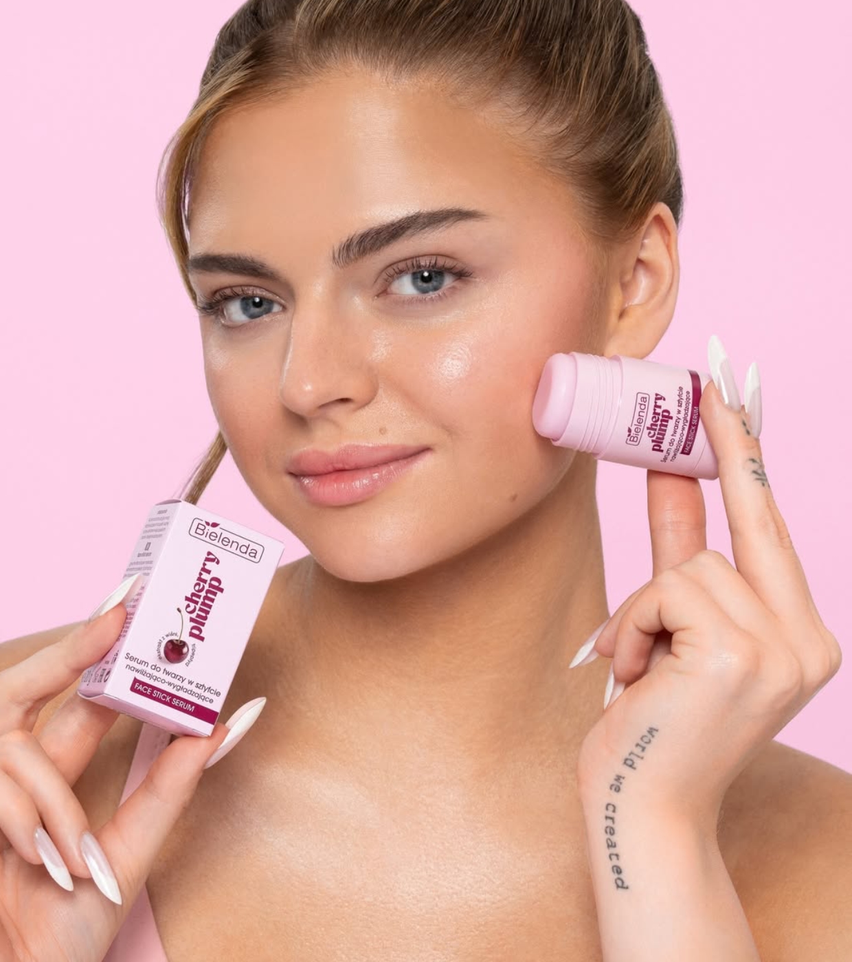 O sérum facial Cherry Plump da Bielenda, em formato de bastão, proporciona hidratação intensa, suavidade acetinada e um brilho natural em uma única etapa.