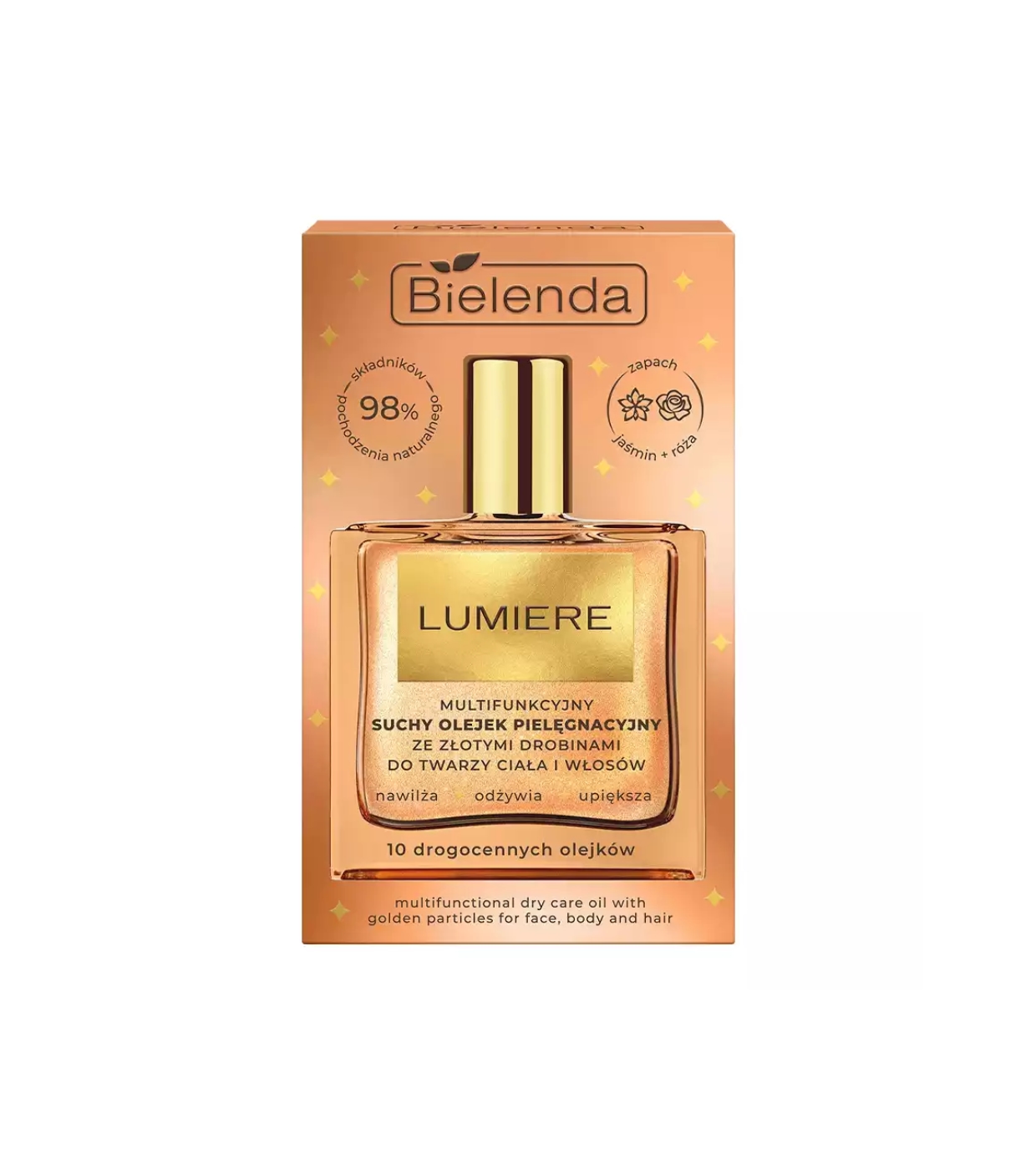 O Óleo Seco Multifuncional Lumiere Shimmer da Bielenda é um tratamento de luxo desenvolvido para cuidar do rosto, corpo e cabelo em uma única aplicação.