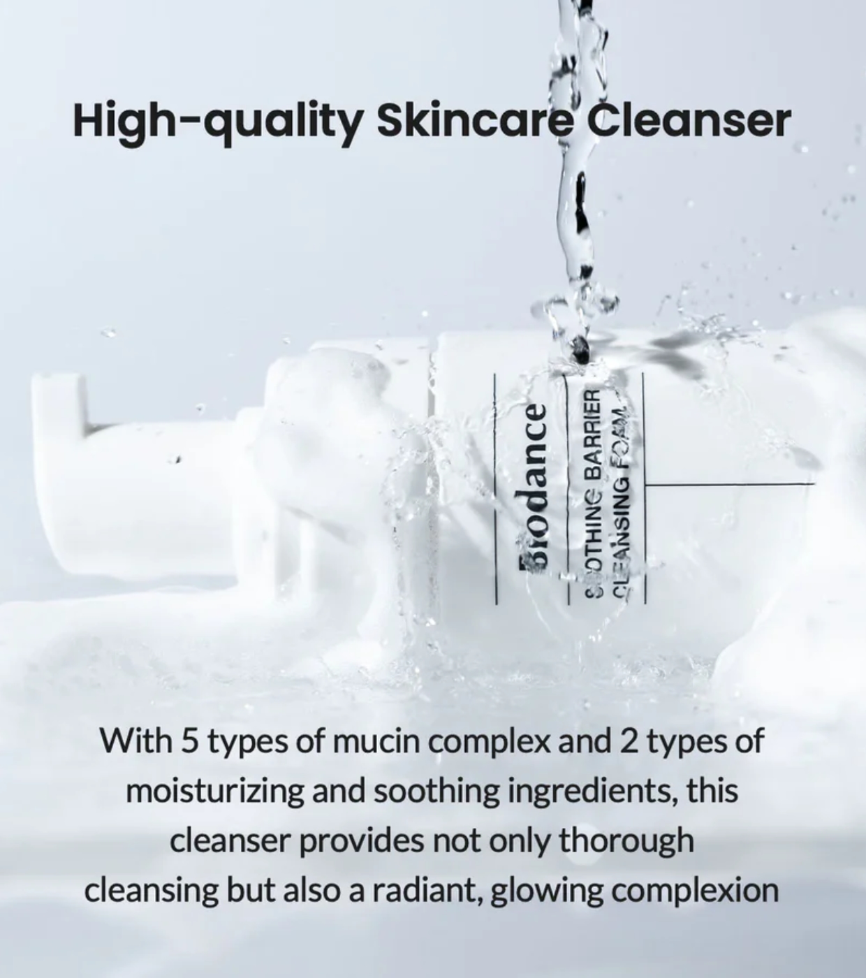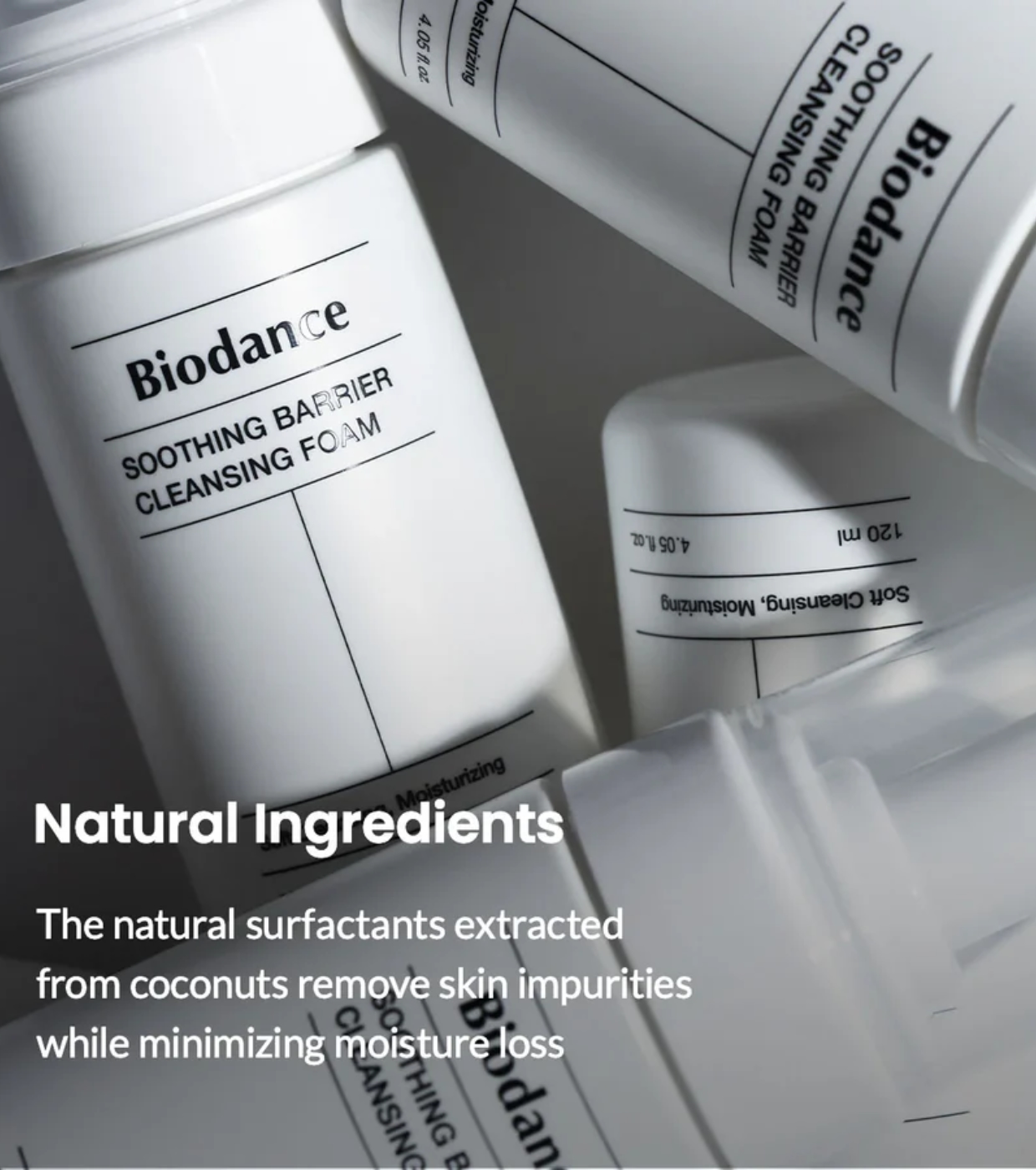Limpe profundamente sua pele sem comprometer seu equilíbrio natural com a Soothing Barrier Cleansing Foam da Biodance , uma espuma suave, porém altamente eficaz, que combina ingredientes naturais com tecnologia dermatológica avançada para proporcionar uma limpeza calmante, hidratante e protetora.