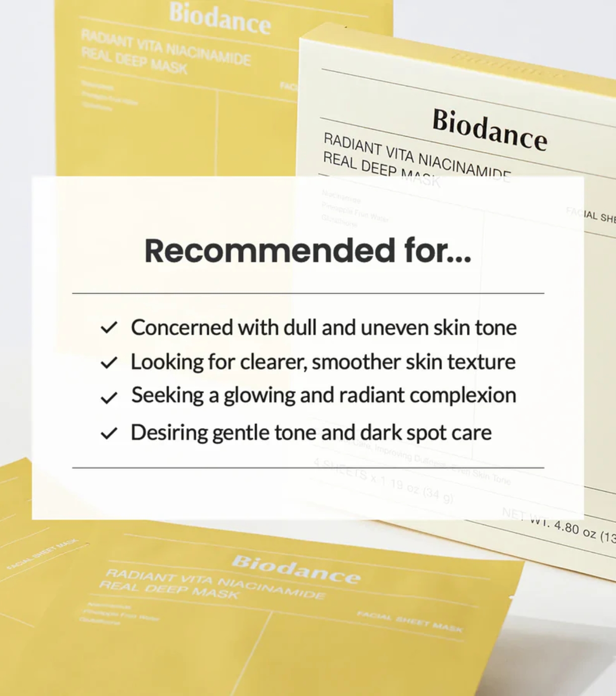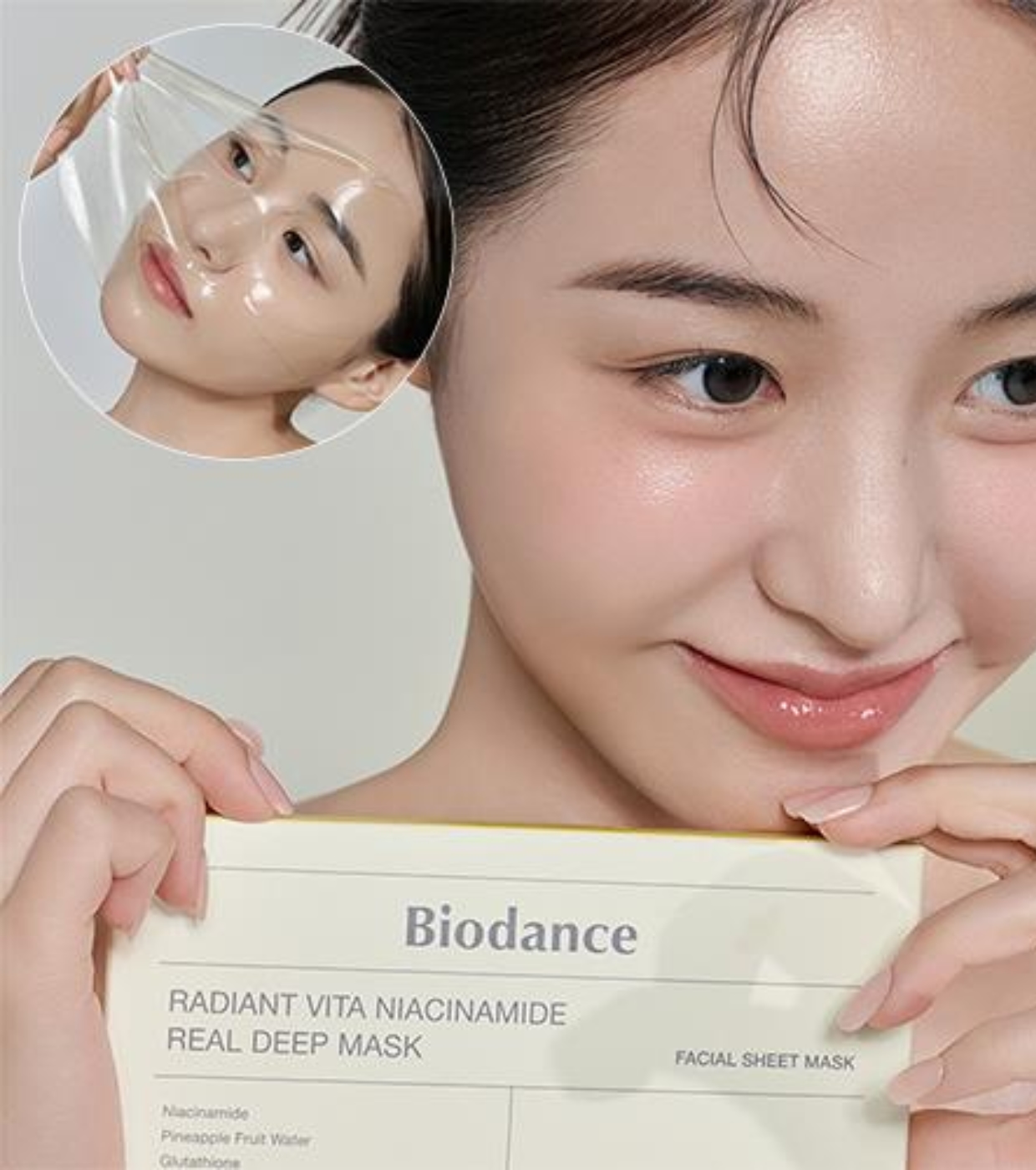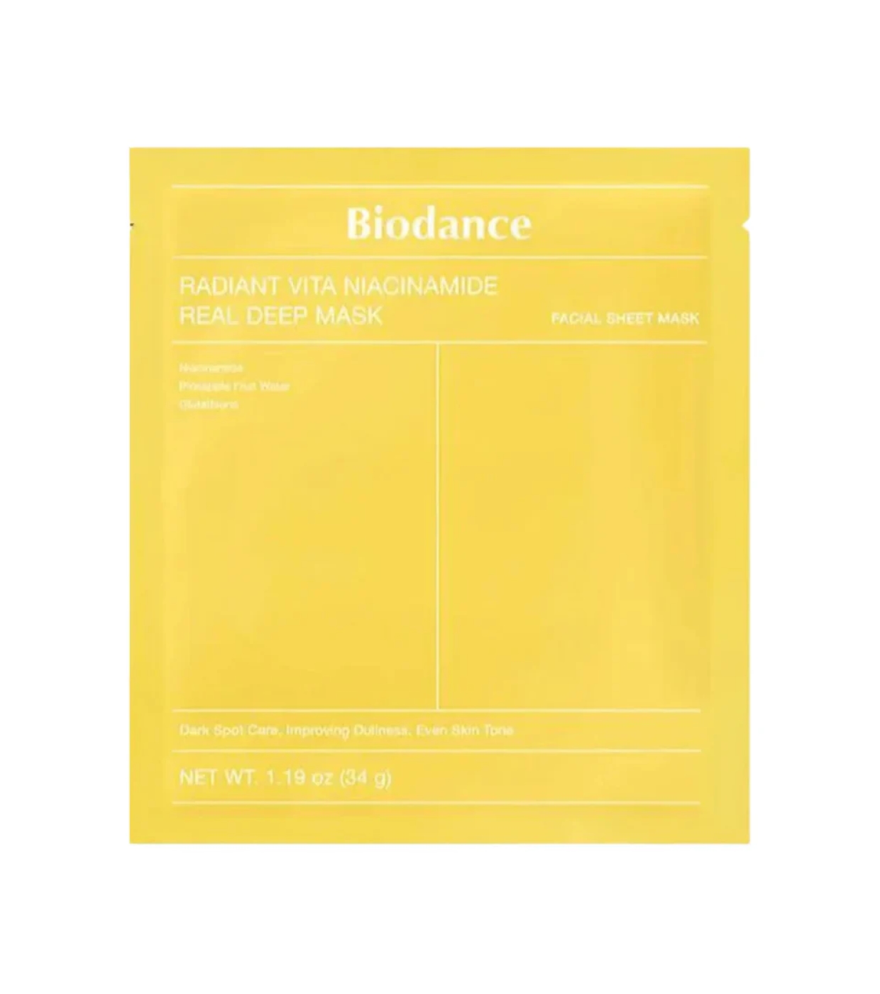 Descubra a máscara facial viral que transforma sua pele em minutos, a máscara facial Radiant Vita Niacinamide da Biodance .