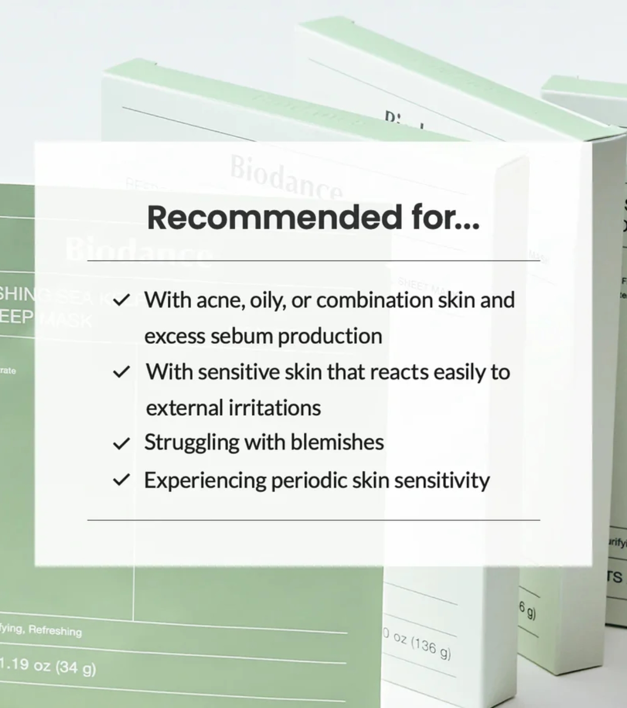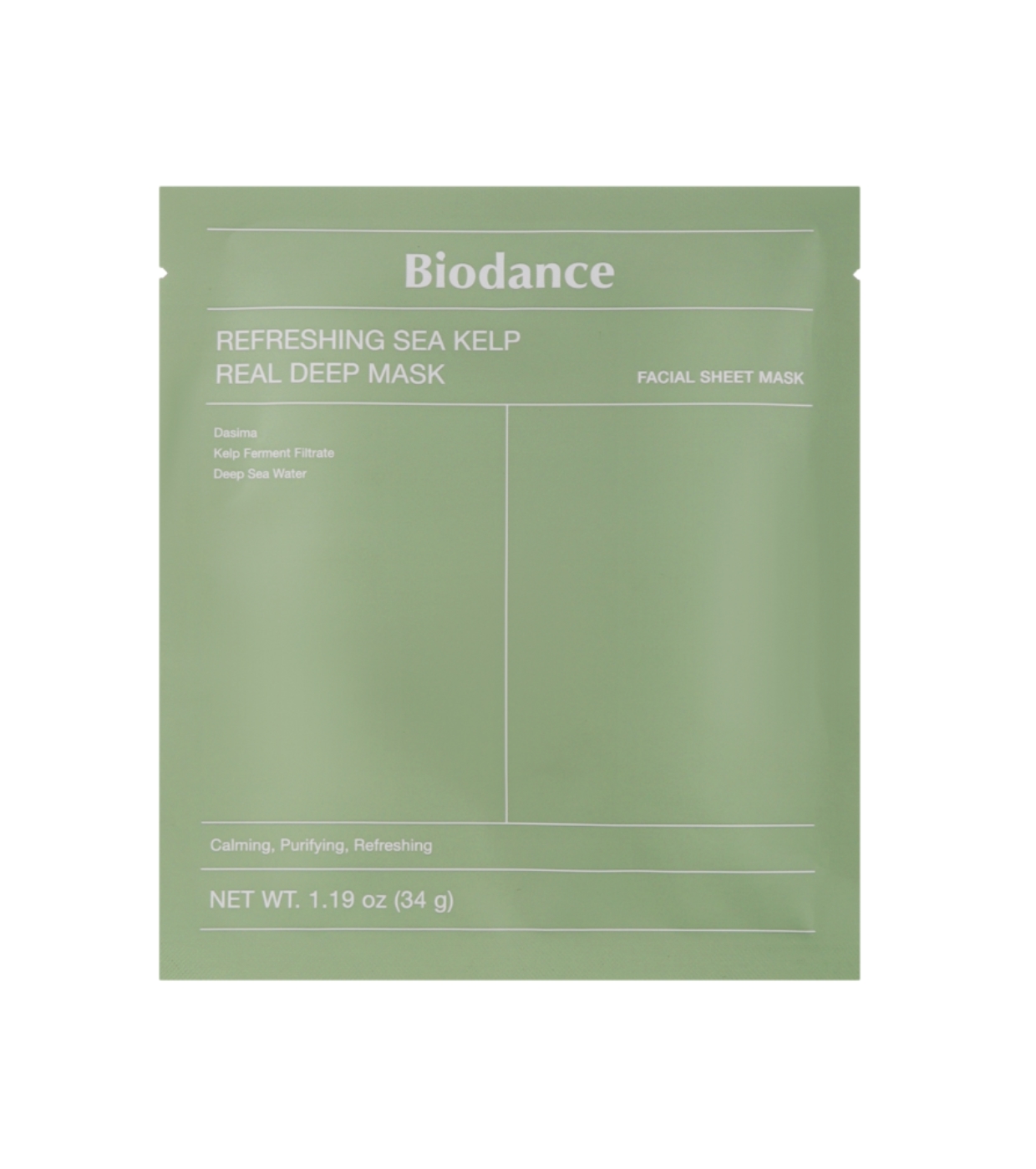Renove e regule a oleosidade com a máscara facial Refreshing Sea Kelp da Biodance .