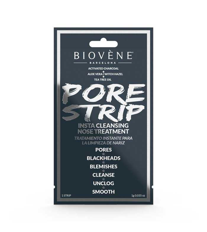 As bandas Charcoal Pore da Biovène eliminam eficazmente os pontos negros, eliminando as impurezas e o excesso de sebo.