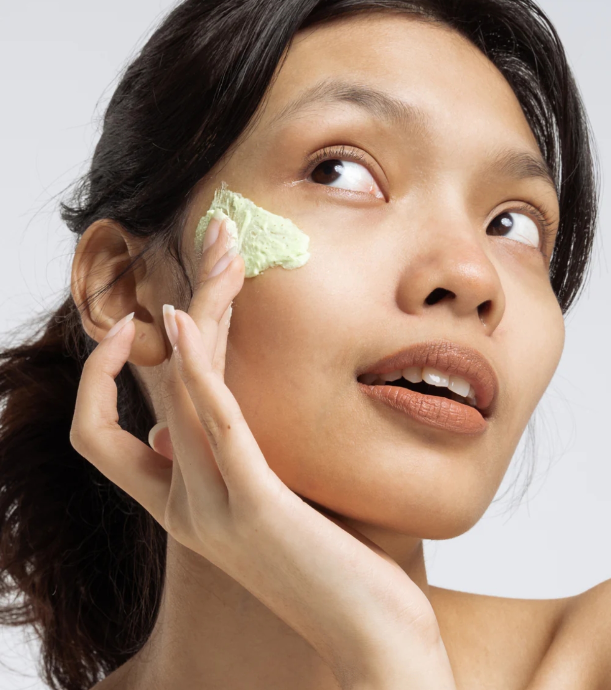 Seque suavemente a pele e aplique generosamente a máscara no rosto, pescoço e decote.
