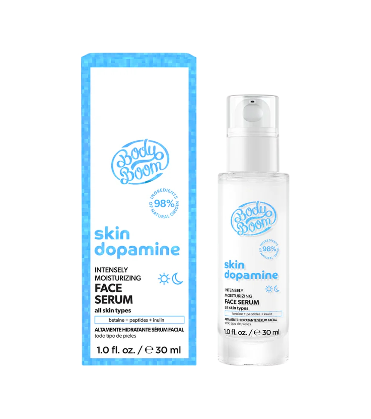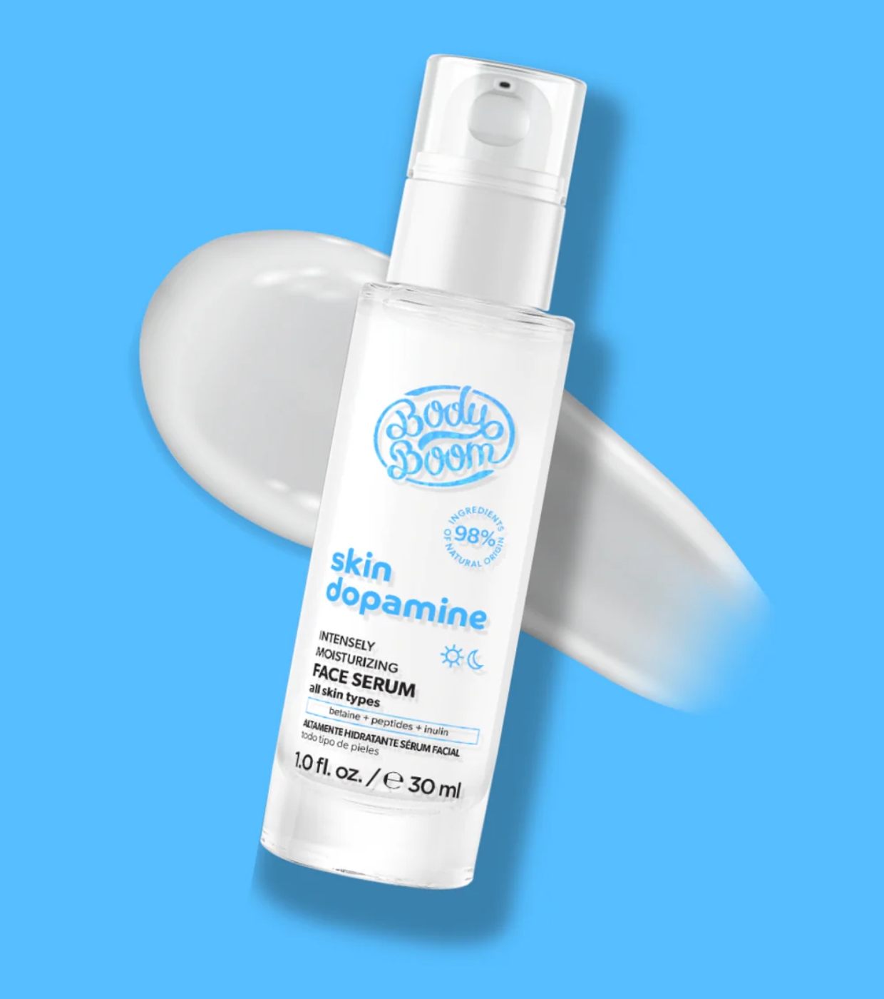 Dê à sua pele um impulso de nutrição com o sérum de hidratação intensa betaina + peptidos + inulina da Bodyboom .