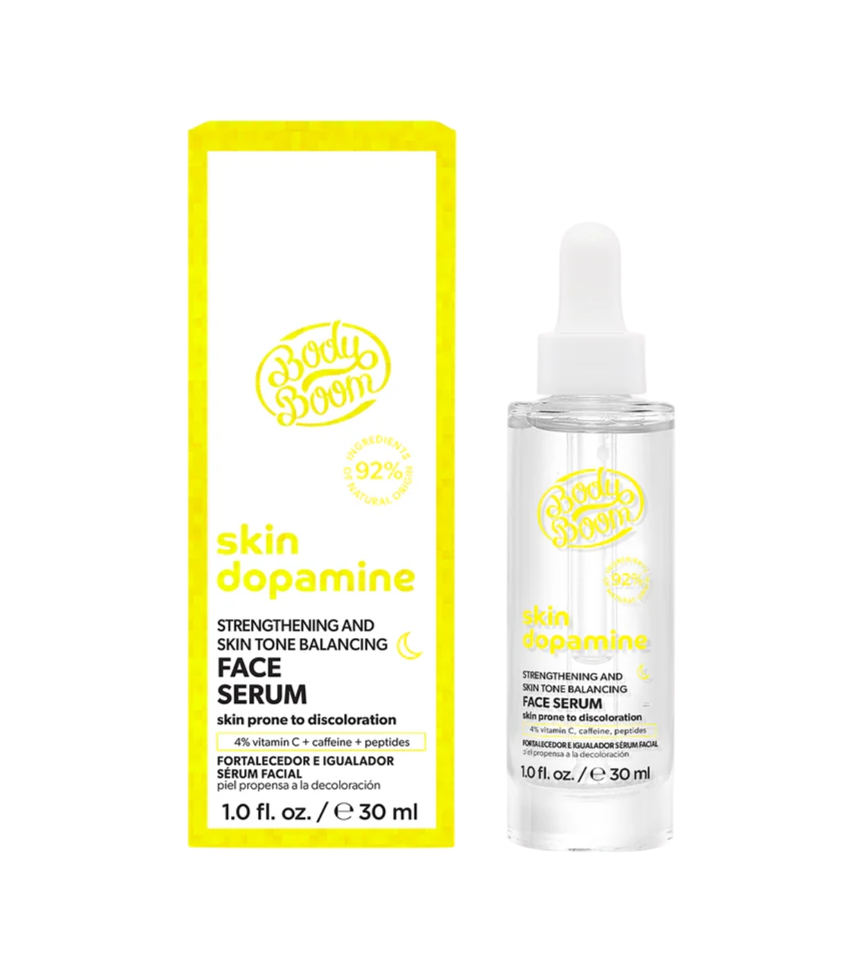 Dê à sua pele um impulso revitalizante com o Sérum Fortalecedor e Unificador 4% Vit C + Cafeína + Peptídeos da Bodyboom , um soro vegano desenvolvido para transformar sua rotina de cuidados matinais.