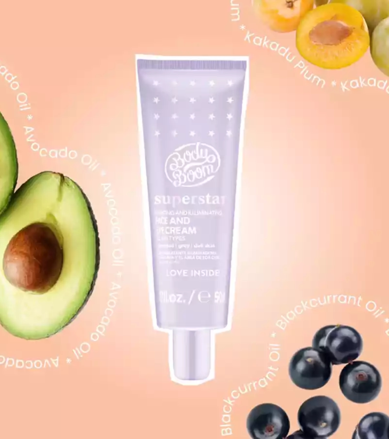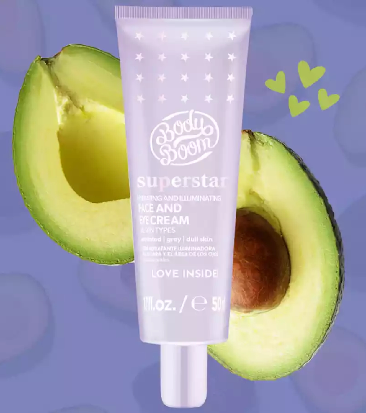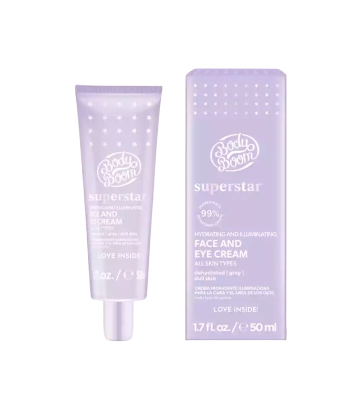 Energize sua pele com o Superstar Face & Eye Cream da BodyBoom , um creme 2 em 1 que hidrata, ilumina e proporciona frescor tanto ao rosto quanto à área dos olhos.