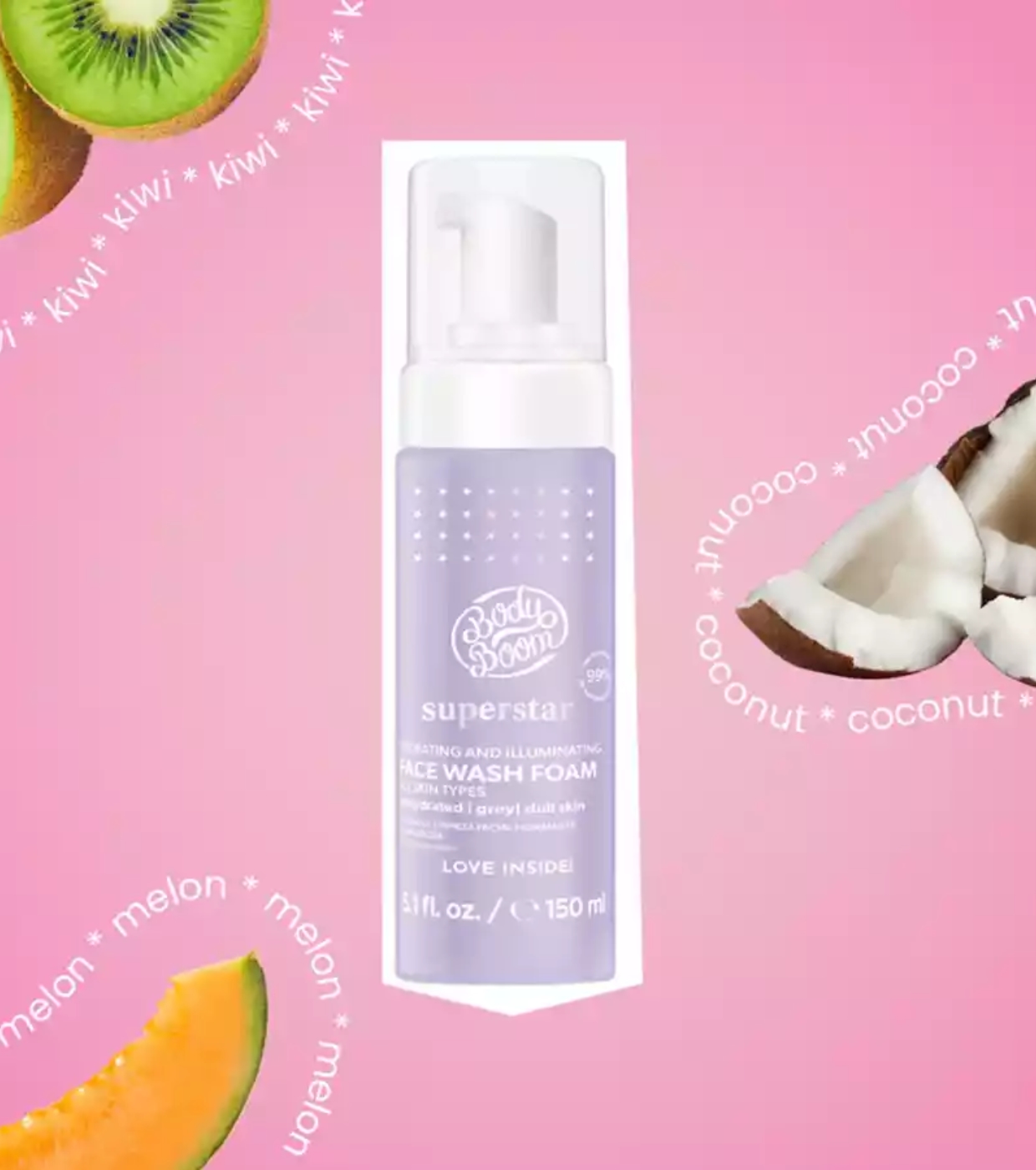 O segredo para uma pele fresca e radiante começa com a Superstar Cleansing Foam da BodyBoom .