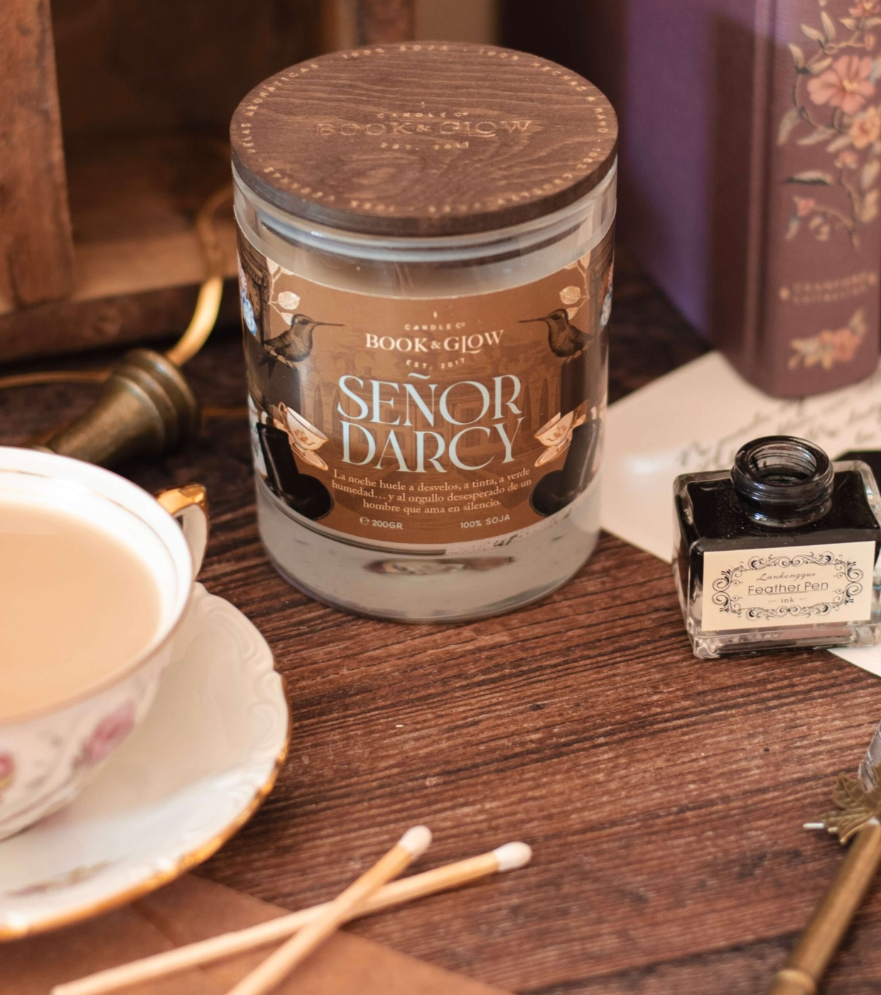 Descubra a vela Señor Darcy da Book and Glow.