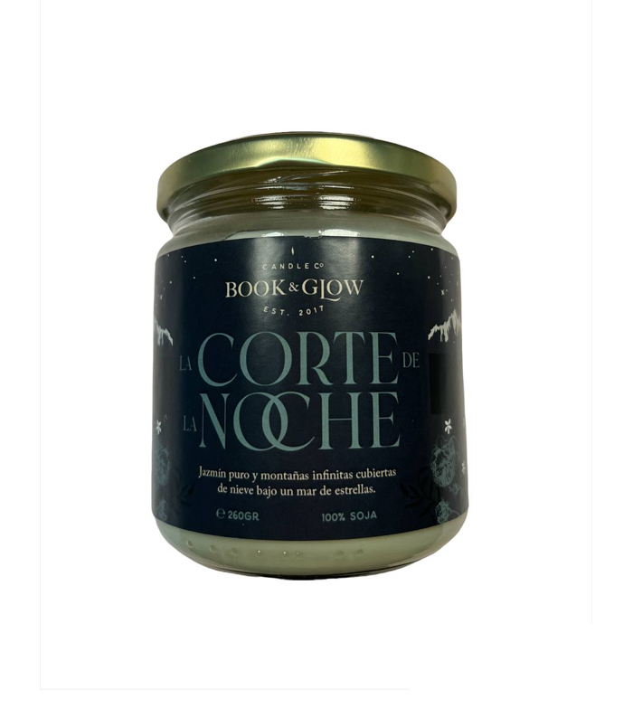 Vela de soja da coleção Extraordinary Worlds da Book and Glow. A Corte Noturna.