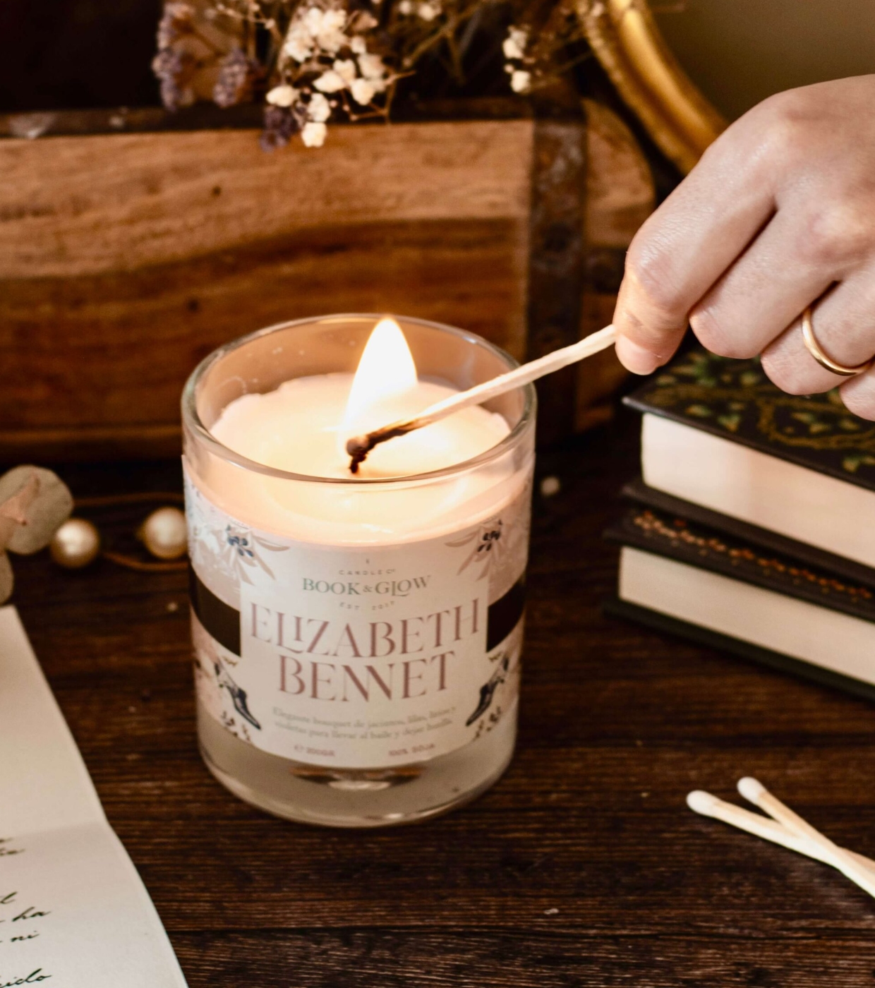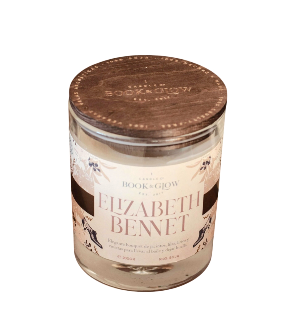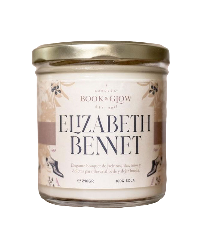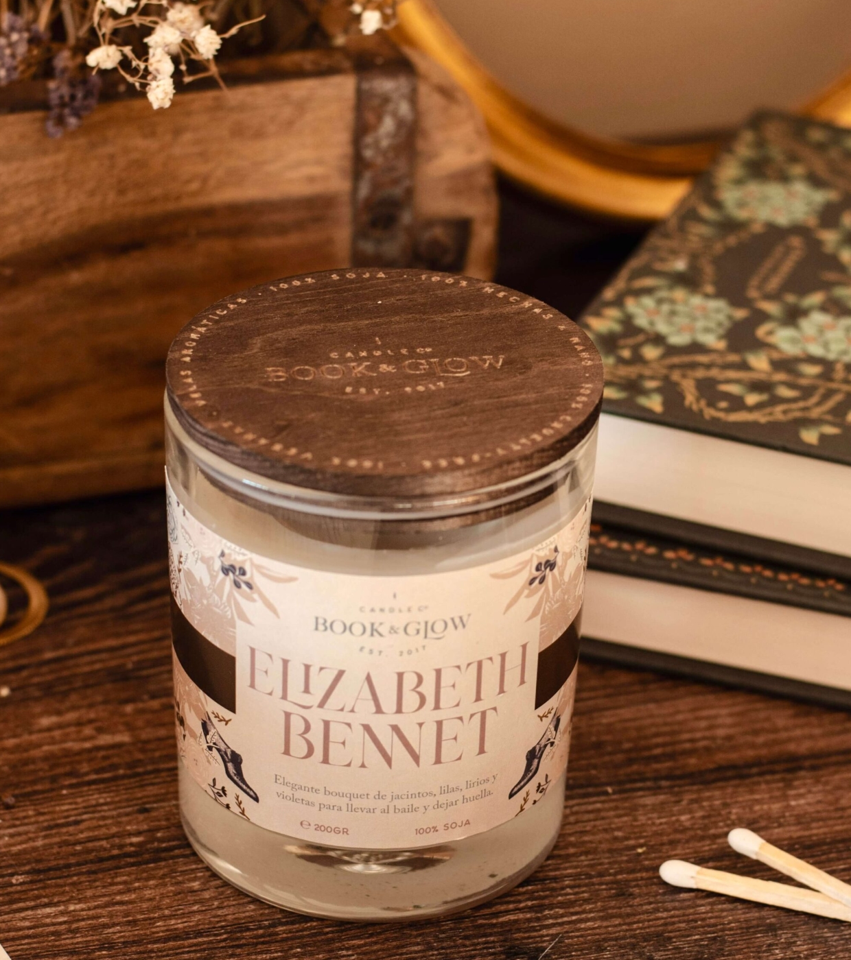 Vela de soja da coleção Extraordinary Worlds da Book and Glow. Elizabeth Bennet.