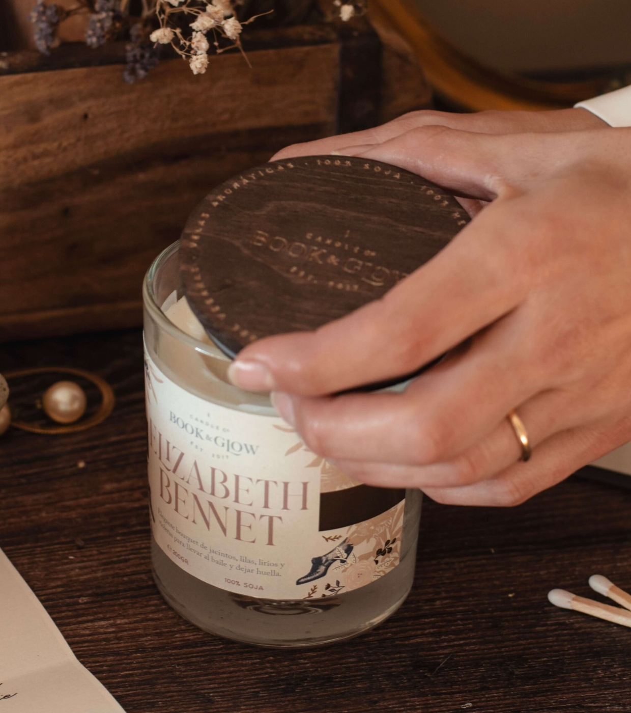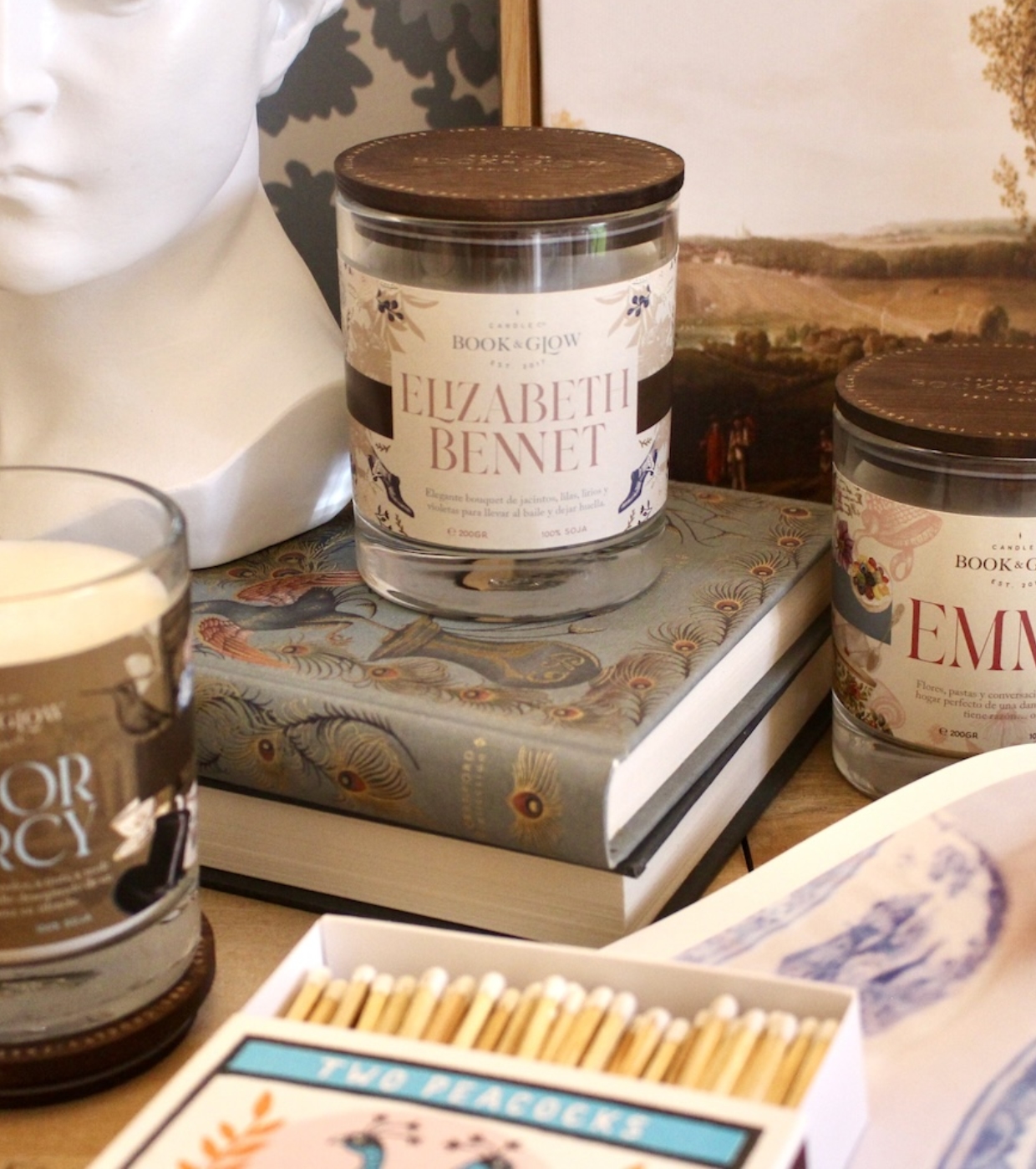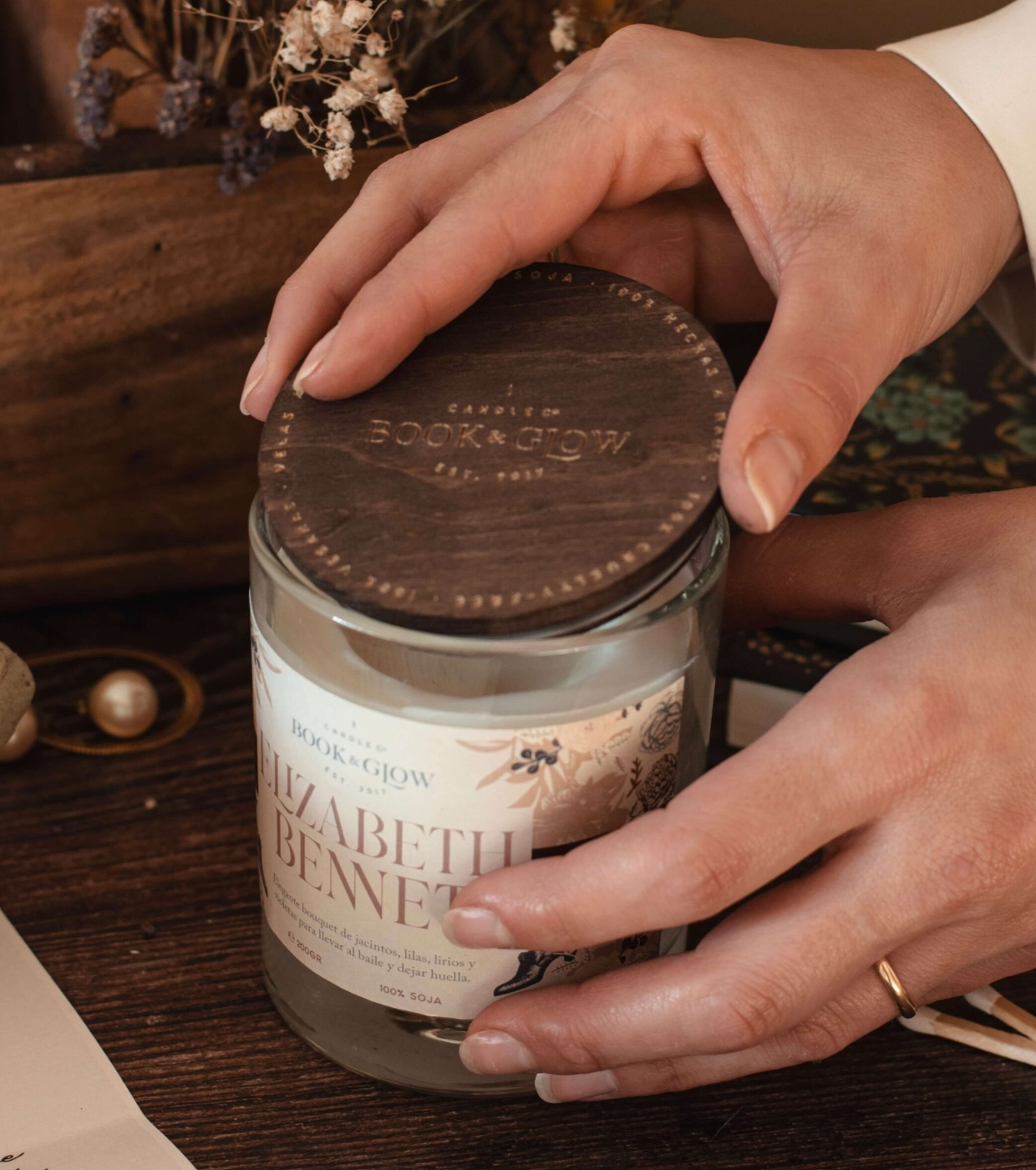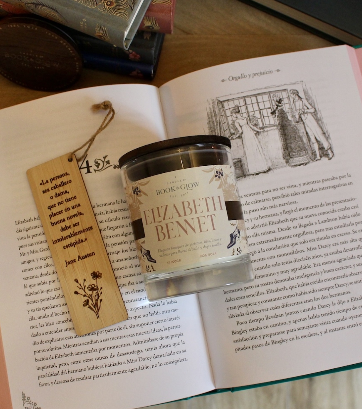 Vela de soja da coleção Extraordinary Worlds da Book and Glow. Elizabeth Bennet.