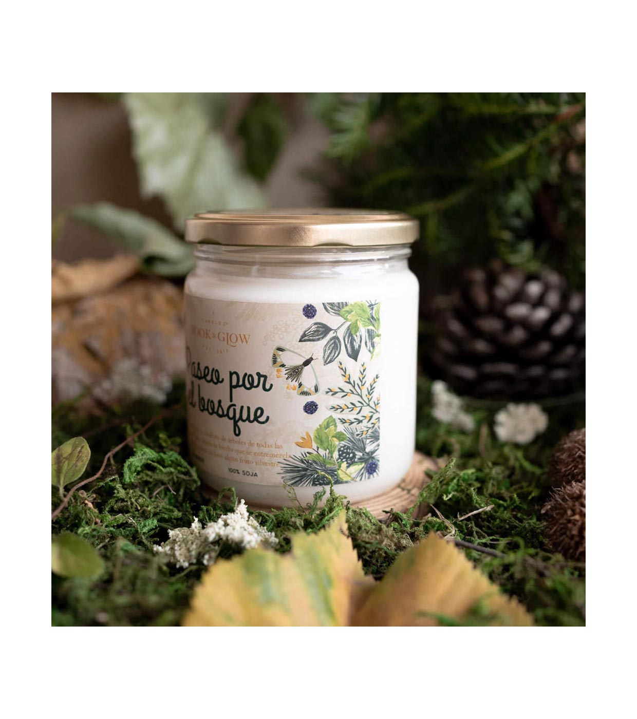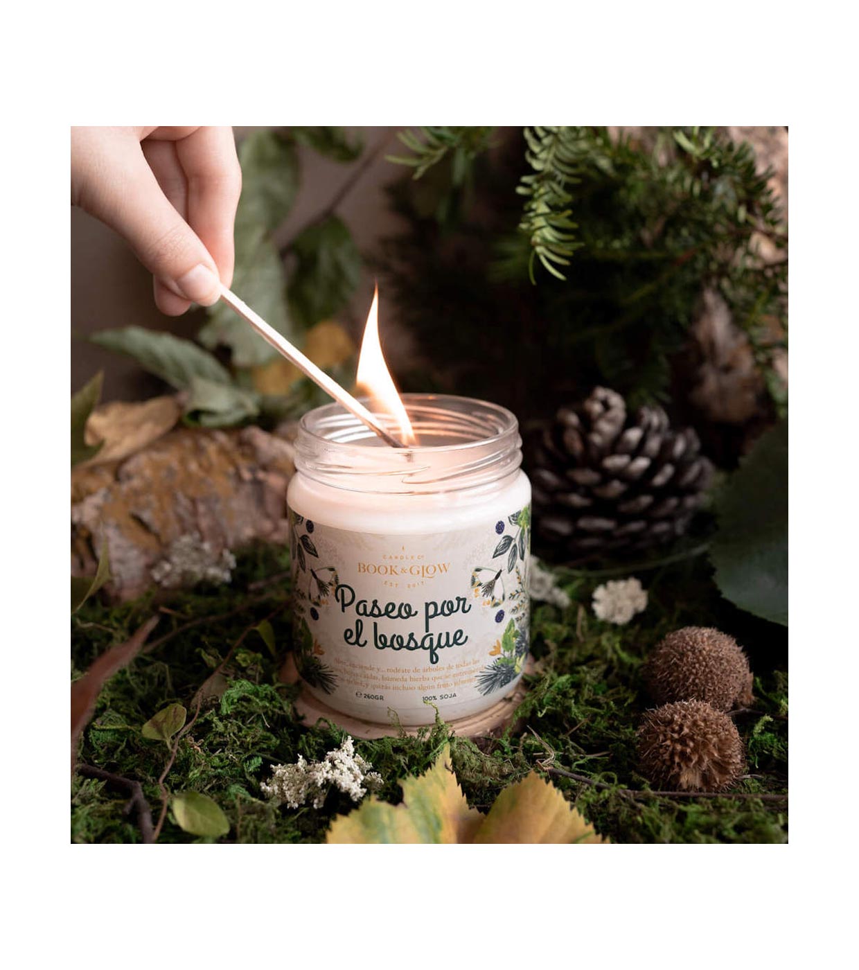 Paseo por el bosque de Book and Glow é uma vela sazonal que é um pouco de tudo (e é por isso que esses tipos de aromas tendem a ser muito bons como presentes quando você não conhece os gostos da outra pessoa, já que você não arrisca tanto.)