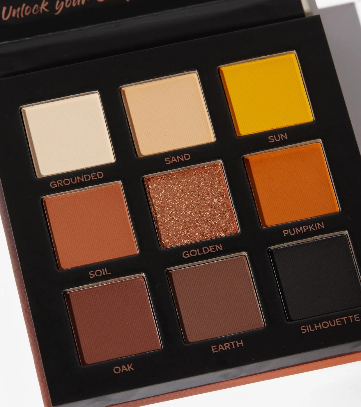 8 sombras matte altamente pigmentadas - Grounded, Sand, Sun, Soil, Pumpkin, Oaks, Earth, Silhouette.