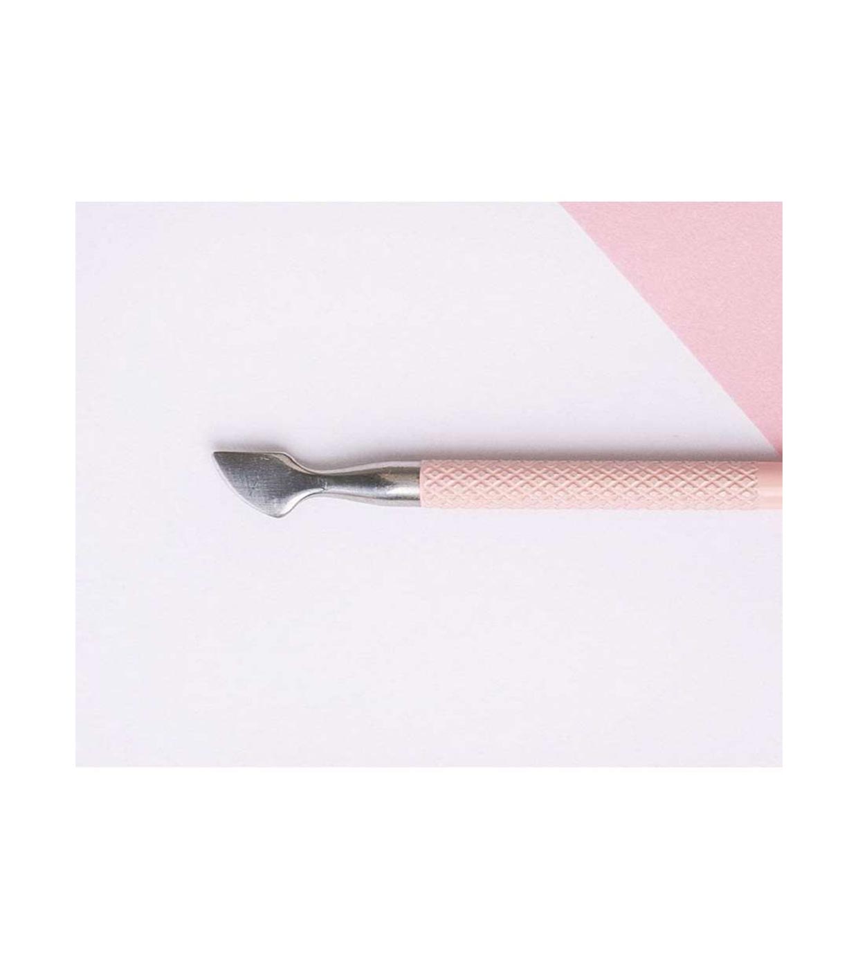 Possui duas pontas: uma ponta arredondada para seguir perfeitamente o formato das cutículas e empurrá-las, e uma ponta mais fina e pontiaguda projetada para empurrar para os cantos e áreas de difícil acesso da cutícula.