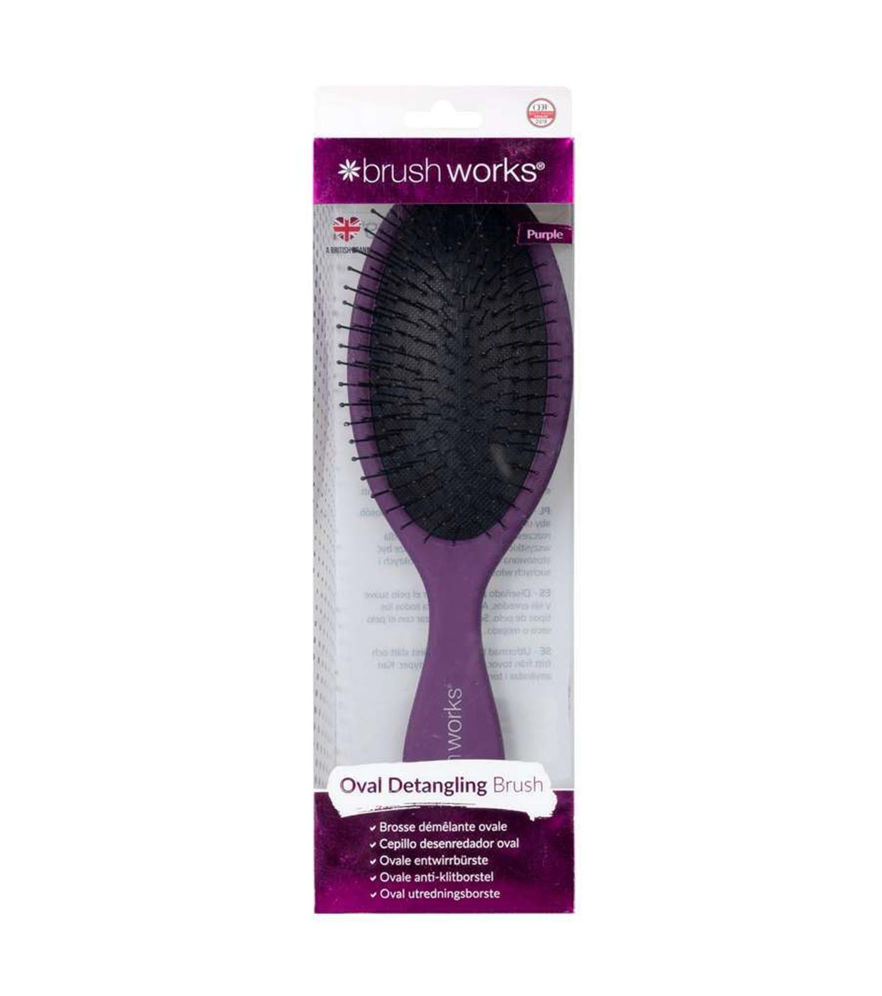 Pincel desembaraçador Brushworks em roxo.