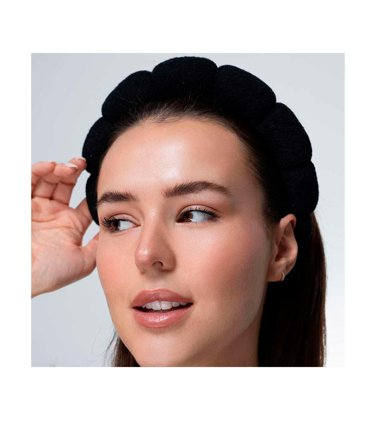 A faixa para a cabeça mantém o cabelo preso para que você possa aproveitar sua rotina de beleza.