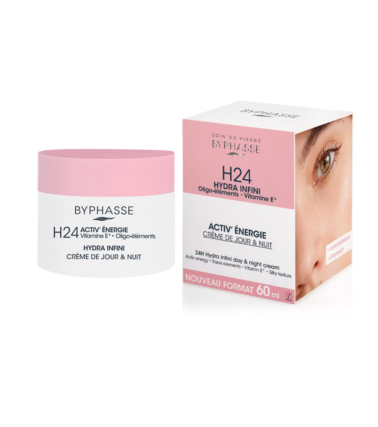 O creme de dia e de noite Hydra Infini 24h da Byphasse hidrata de forma duradoura as camadas superiores da pele.