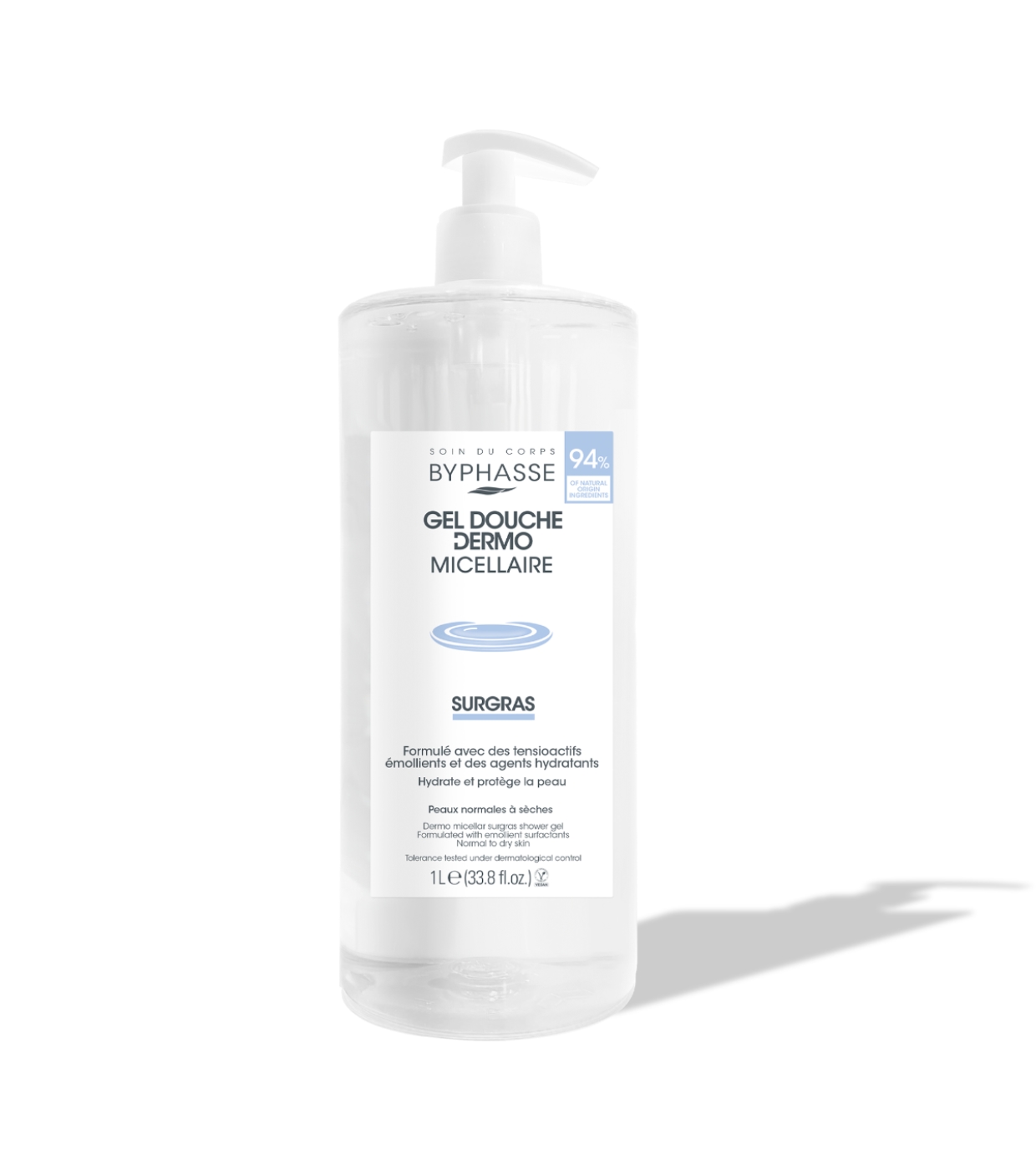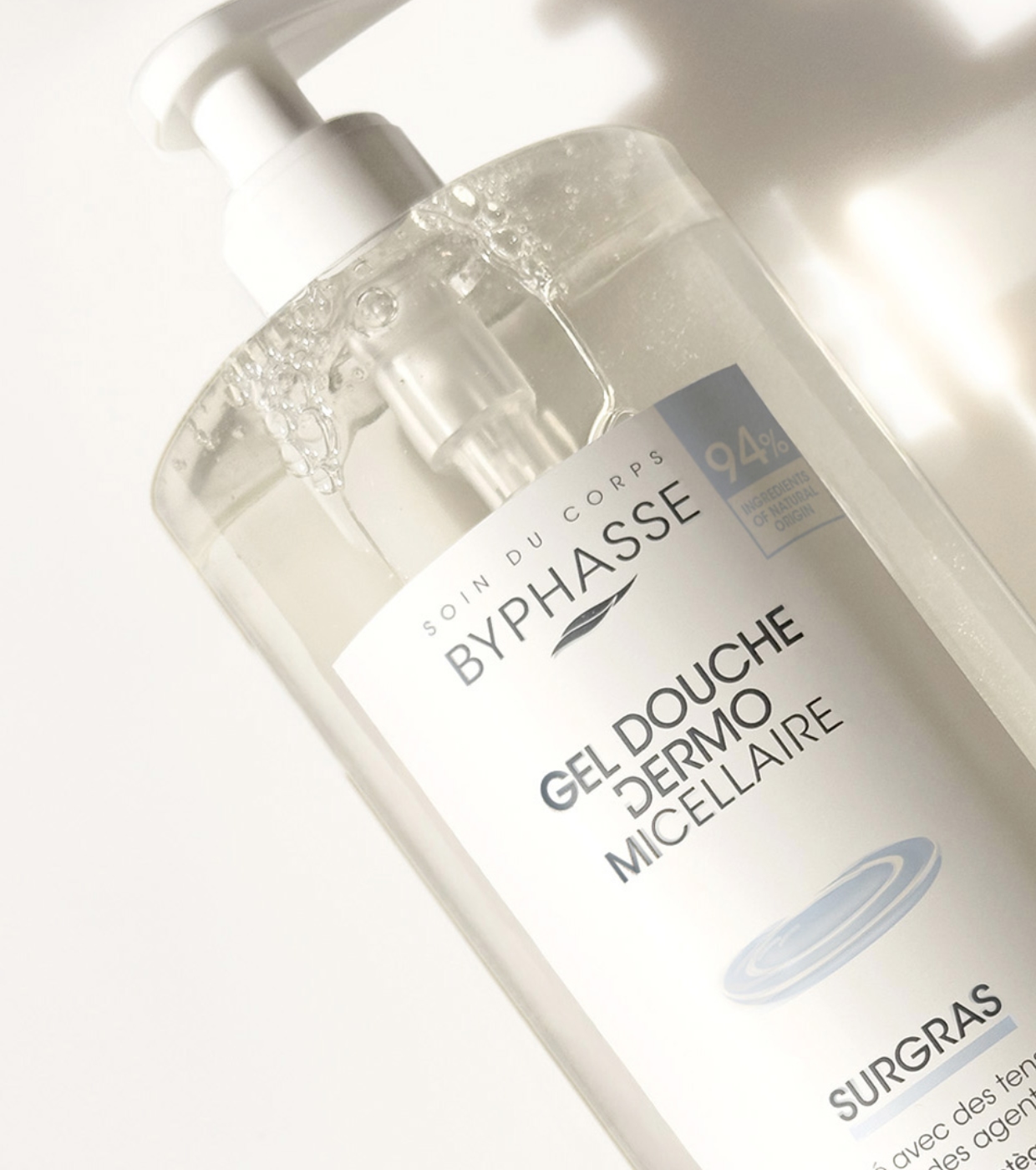 O gel de banho Surgras da Byphasse é formulado com ingredientes suaves e um pH neutro que respeita o equilíbrio natural da pele após cada banho.
