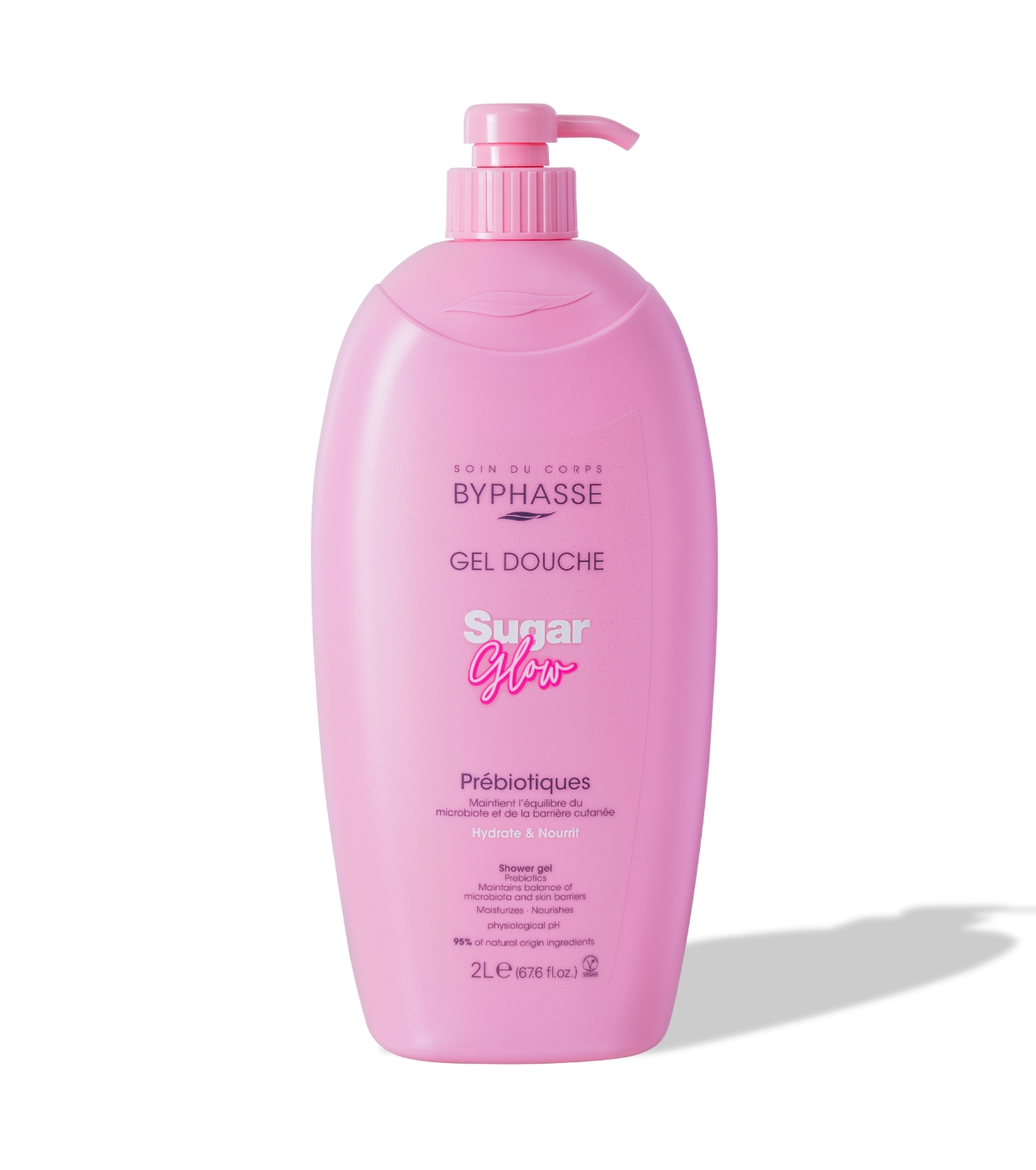 O gel de banho Sugar Glow da Byphasse limpa, hidrata e nutre a pele graças à sua fórmula enriquecida com prebióticos de origem vegetal, que ajudam a manter o equilíbrio da microbiota e a fortalecer a barreira cutânea.