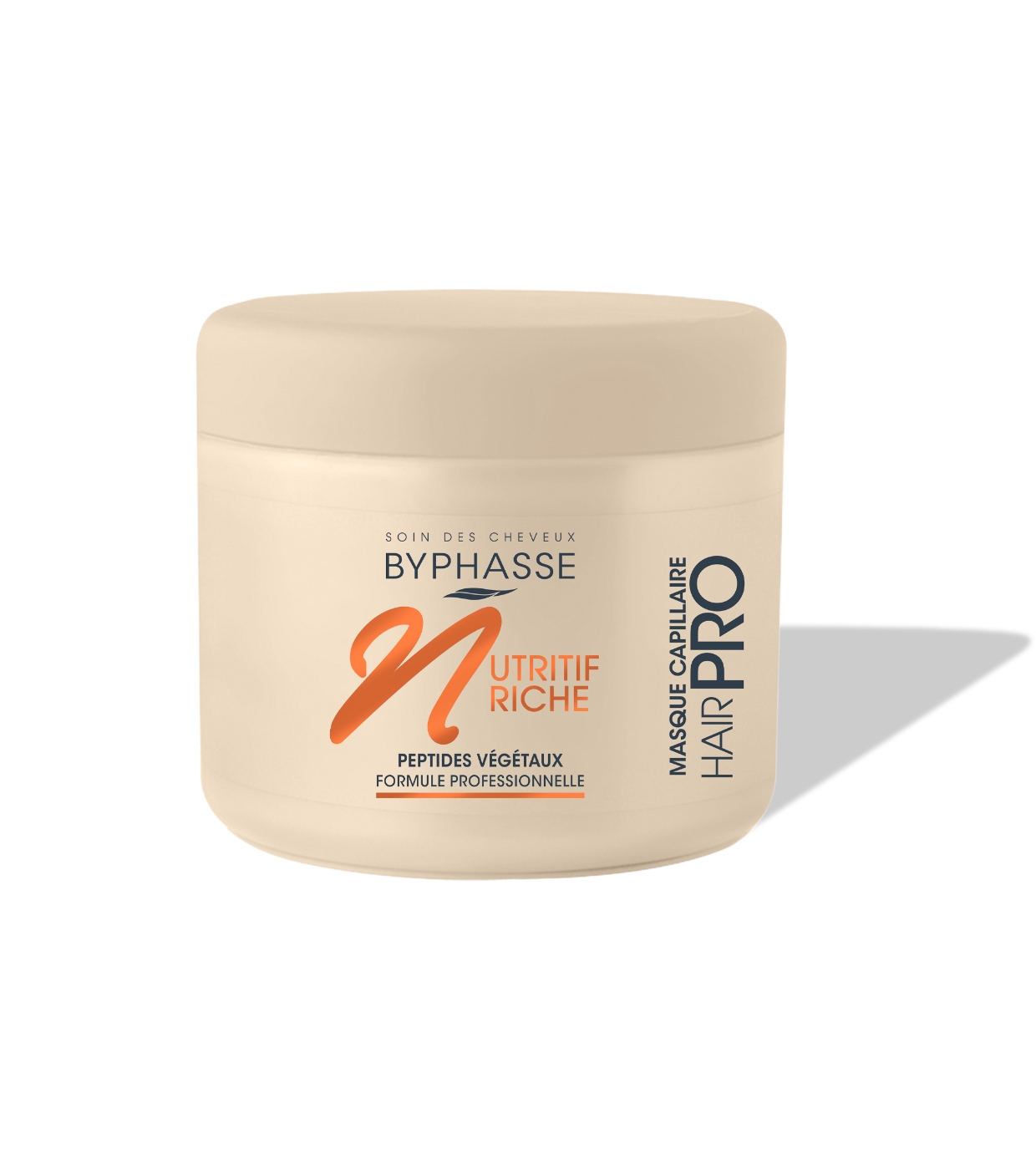 A máscara Hair Pro da Byphasse , especialmente formulada para cabelos secos e danificados, proporciona nutrição intensa que revitaliza a fibra capilar desde o interior.