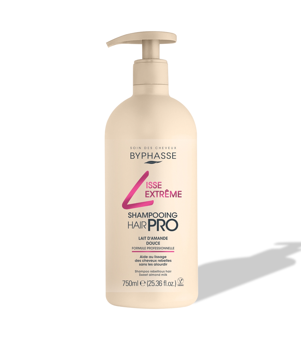 Controle o frizz e obtenha um acabamento suave e sedoso com o shampoo Byphasse Hair Pro Liss Extrême .