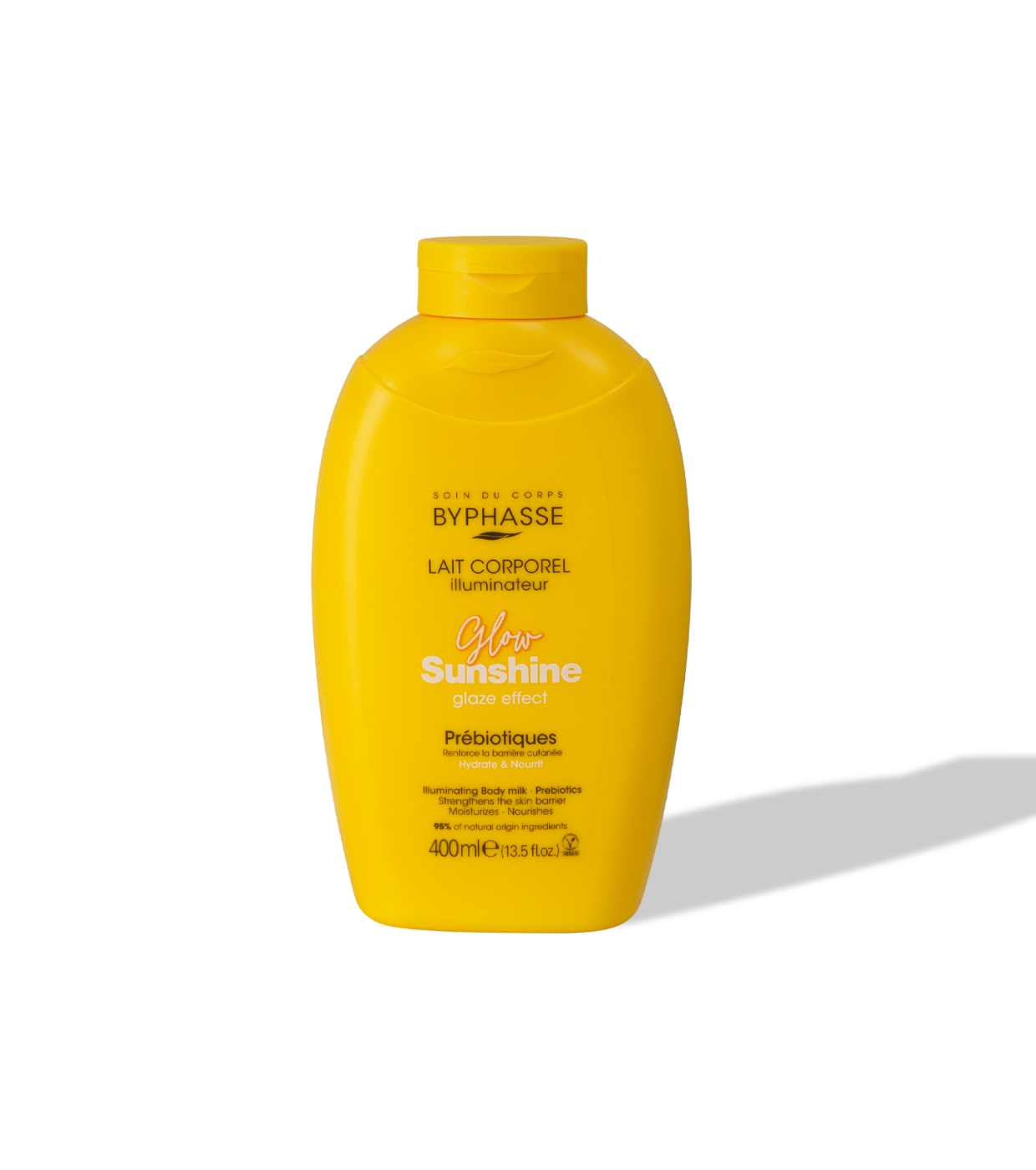 Consiga um efeito de "pele de vidro" com o leite corporal iluminador Glow Sunshine da Byphasse , uma fórmula nutritiva que combina prebióticos, manteiga de karité e óleo de semente de uva para fortalecer a barreira cutânea enquanto hidrata, nutre e ilumina a pele.