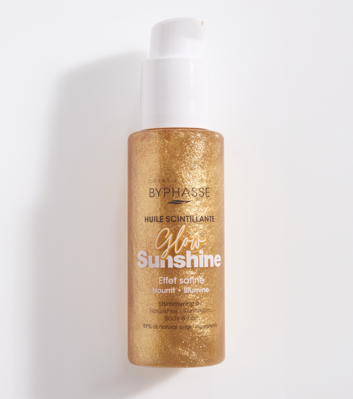 O óleo brilhante Sugar Glow da Byphasse nutre a pele e o cabelo, deixando-os luminosos, macios e sublimes, com um acabamento delicadamente luminoso.