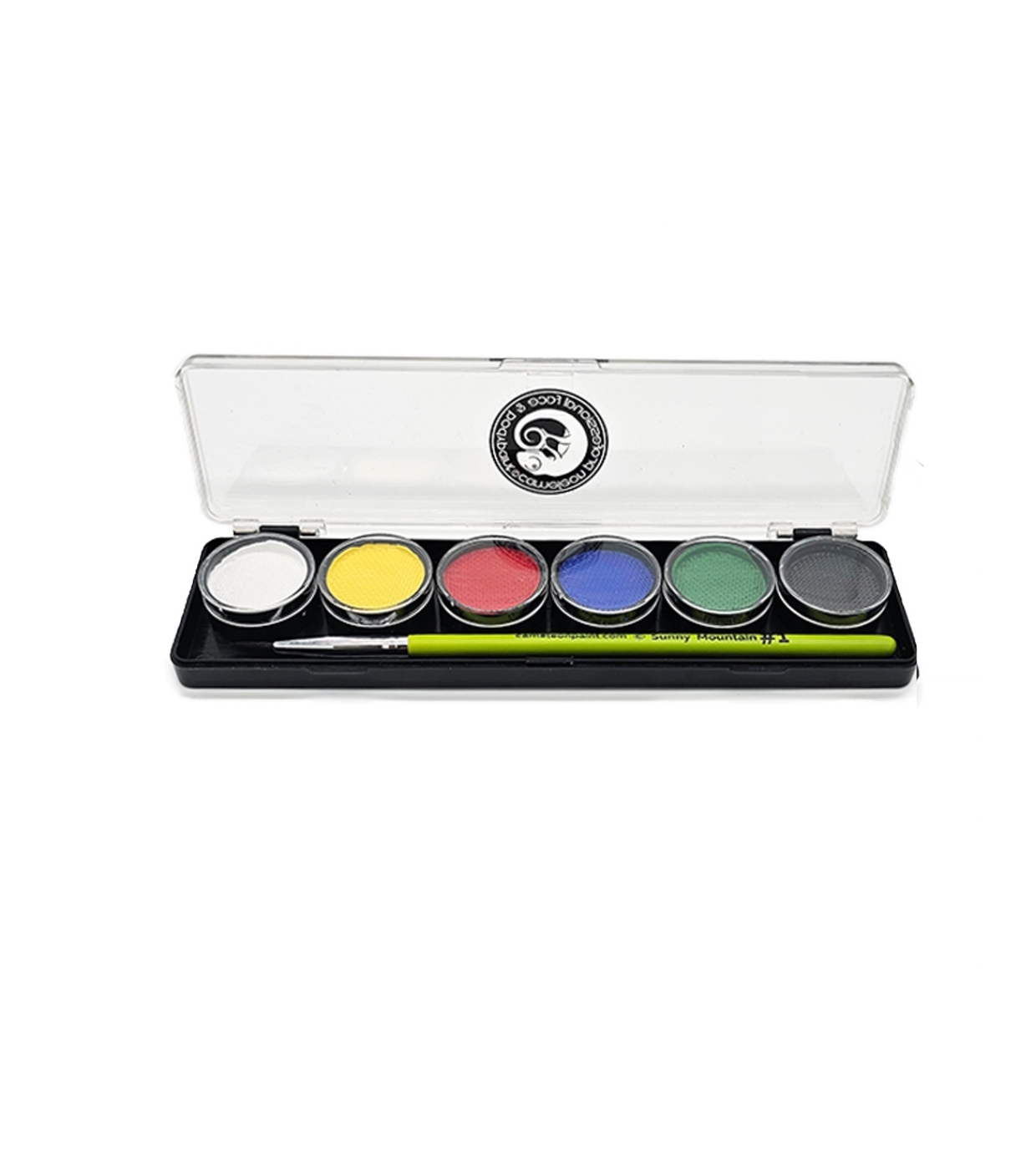 Inclui seis potes de 8 g de tons básicos e fluorescentes, perfeitos para maquiagem, fantasias, próteses, máscaras, calvície artificial ou aplicações em roupas e calçados.