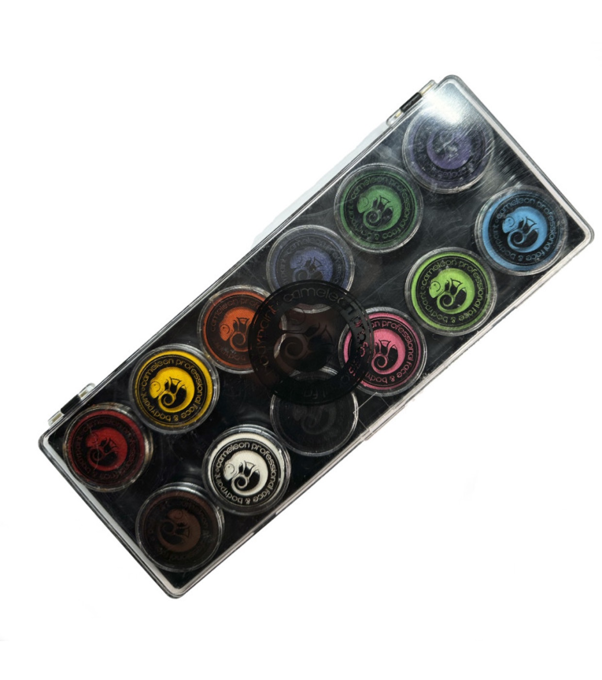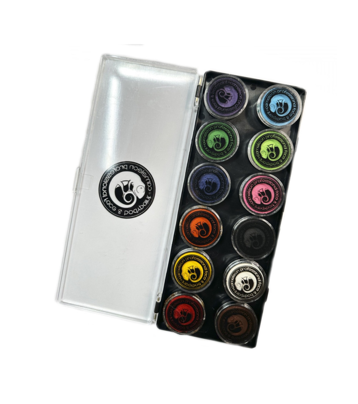 Descubra a maquiagem profissional à base de água Cameleon , desenvolvida para oferecer longa duração, alta cobertura e cores intensas. Ideal para maquiagem artística e pintura facial, sua fórmula de alta qualidade permite criar designs vibrantes e detalhados com acabamento impecável.