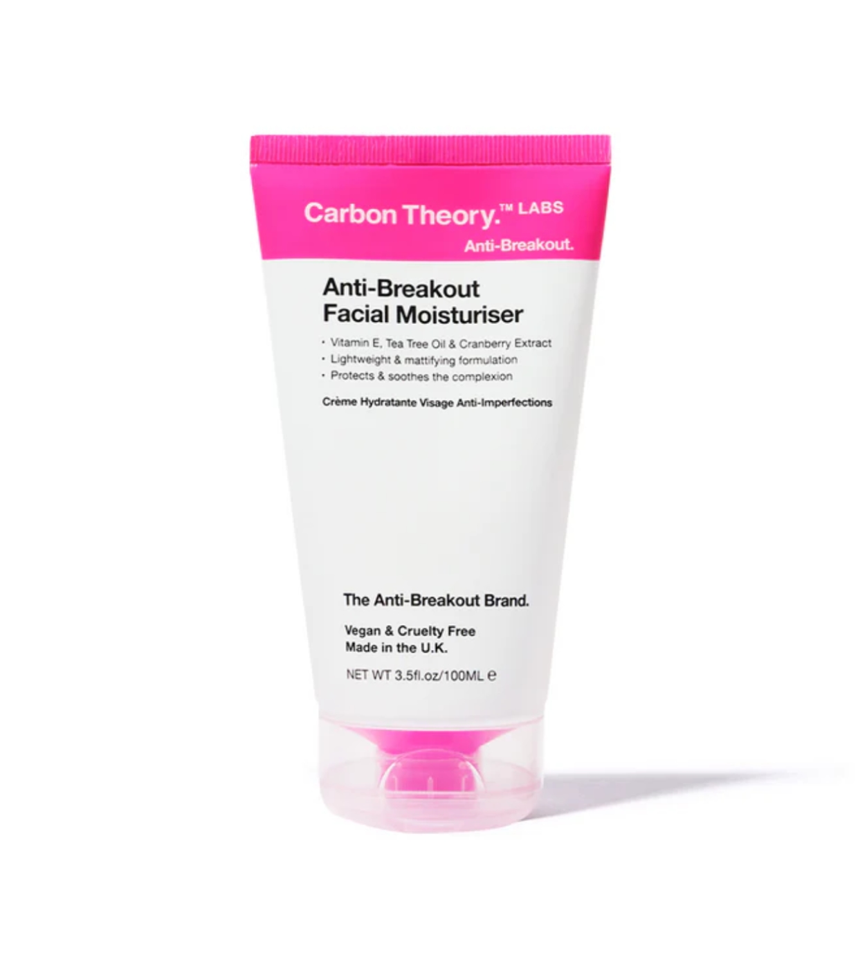 Carbon Theory O hidratante facial é um hidratante antiacne que combina o poder da vitamina E, óleo da árvore do chá e extratos naturais para prevenir erupções, reduzir a inflamação e manter a pele hidratada e protegida.