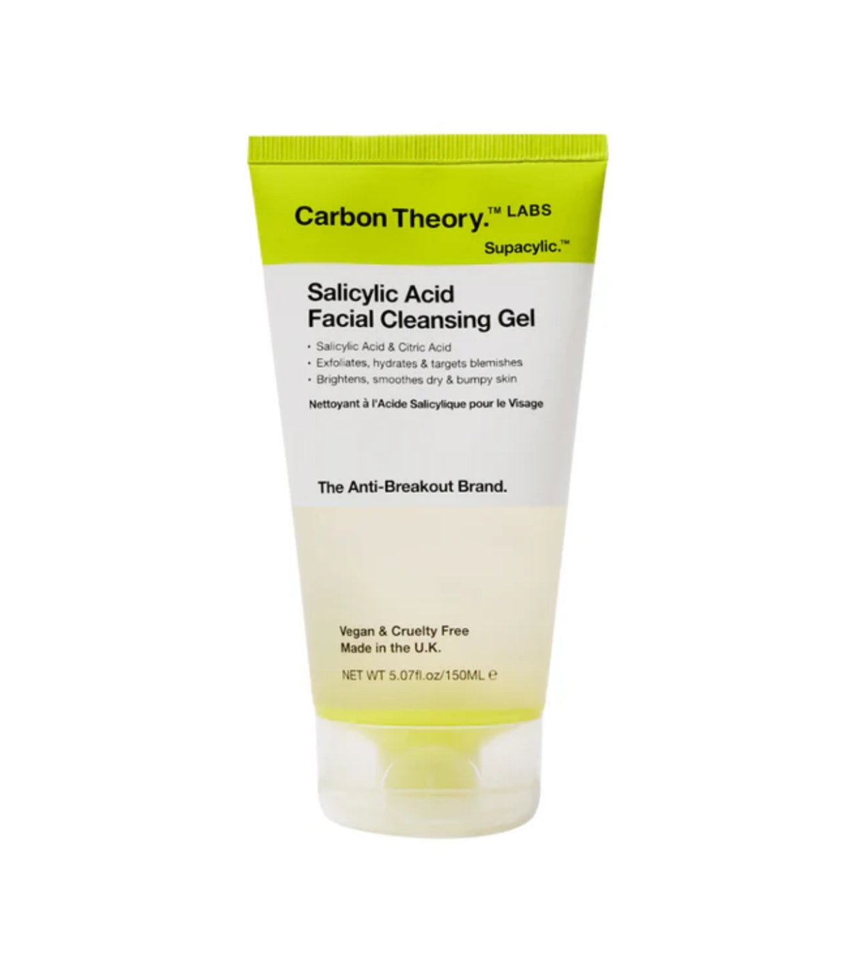 Carbon Theory O Gel de Limpeza Esfoliante com 0,5% de Ácido Salicílico (BHA) oferece a mesma eficácia purificadora da nossa Barra de Limpeza Esfoliante, mas na conveniência de um tubo que pode ser espremido.