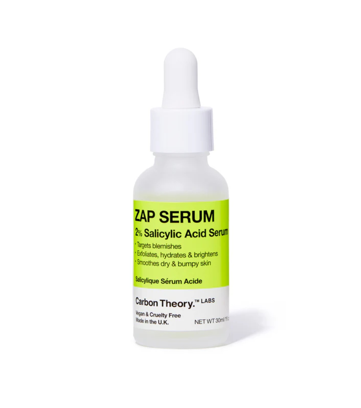 Carbon Theory O sérum facial com 2% de ácido salicílico Carbon Theory é formulado com 2% de ácido salicílico (BHA) para combater manchas, limpar os poros e prevenir erupções cutâneas, deixando a pele com uma sensação de frescor, regeneração e equilíbrio.