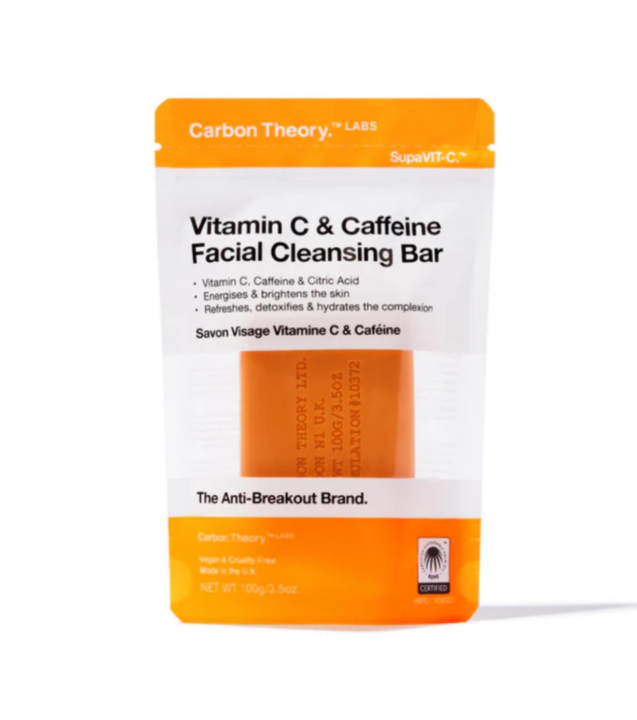 Carbon Theory O sabonete facial com vitamina C é formulado com vitamina C e cafeína para hidratar, iluminar e revitalizar a pele.