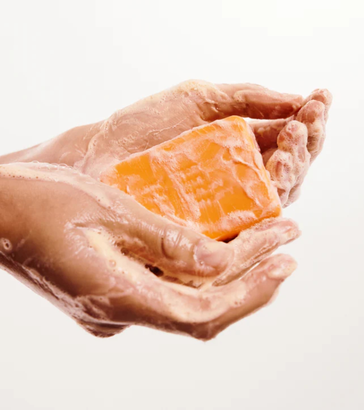 Passe-o em água morna e esfregue a barra para fazer espuma.