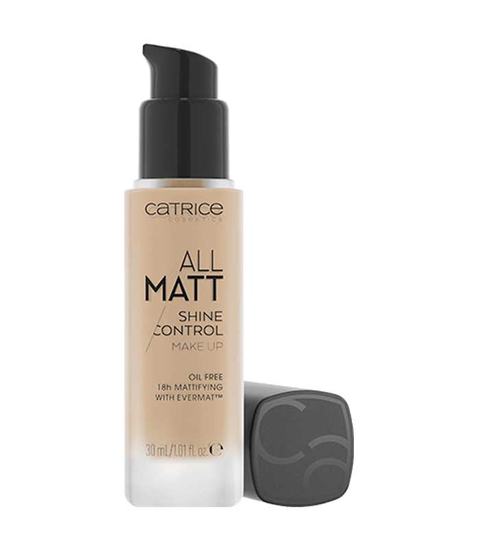 A base All Catrice Matt Shine Control proporciona um acabamento fosco à pele por até 18 horas.