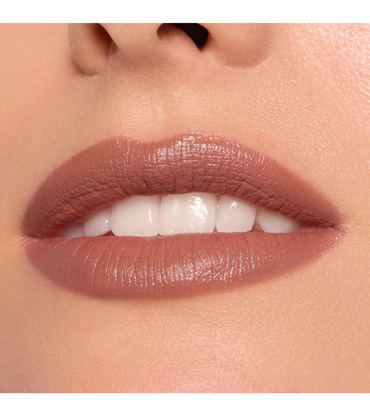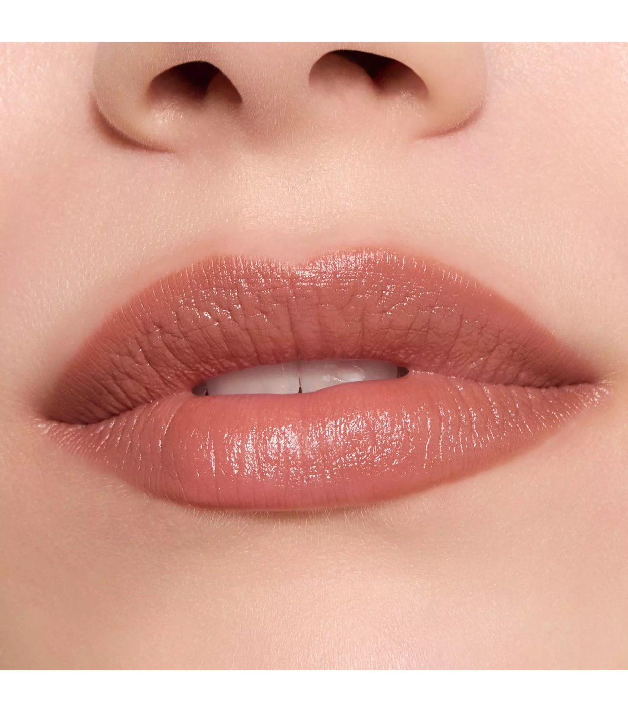 Sua fórmula é enriquecida com manteiga de karité e vitamina E, que proporciona hidratação extra aos lábios com acabamento suave acetinado.