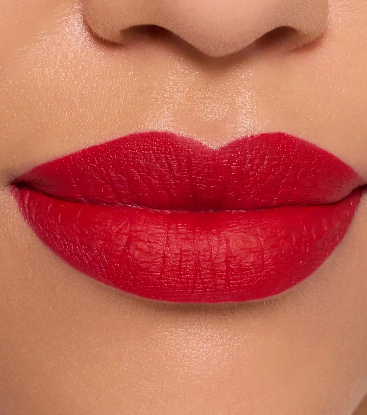 Sua fórmula leve e duradoura desliza suavemente nos lábios para um acabamento aveludado e matte que não transfere nem resseca.