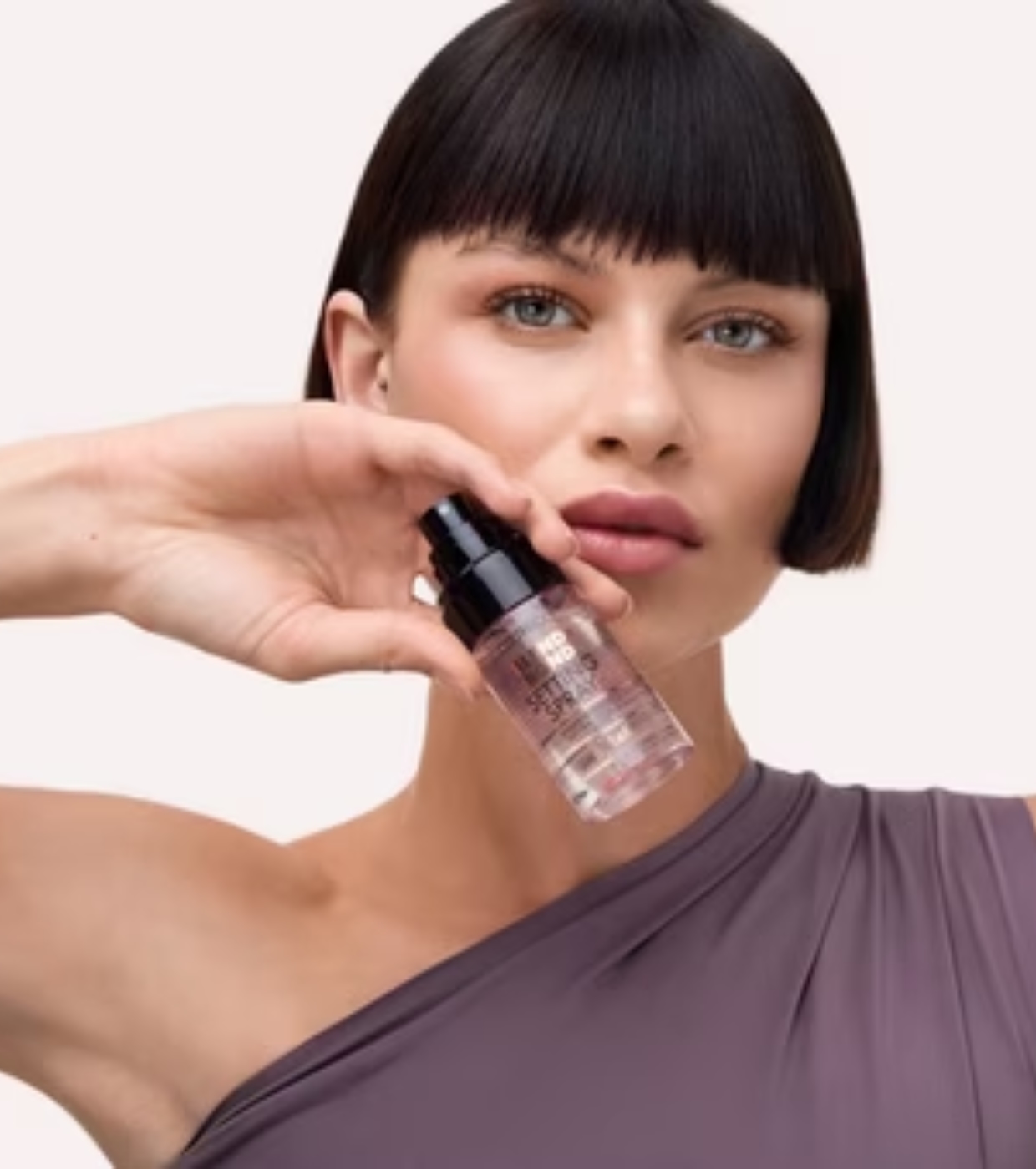 Segure o spray a cerca de 20 cm do seu rosto e aplique em movimentos circulares ou em “X” para uma cobertura uniforme.