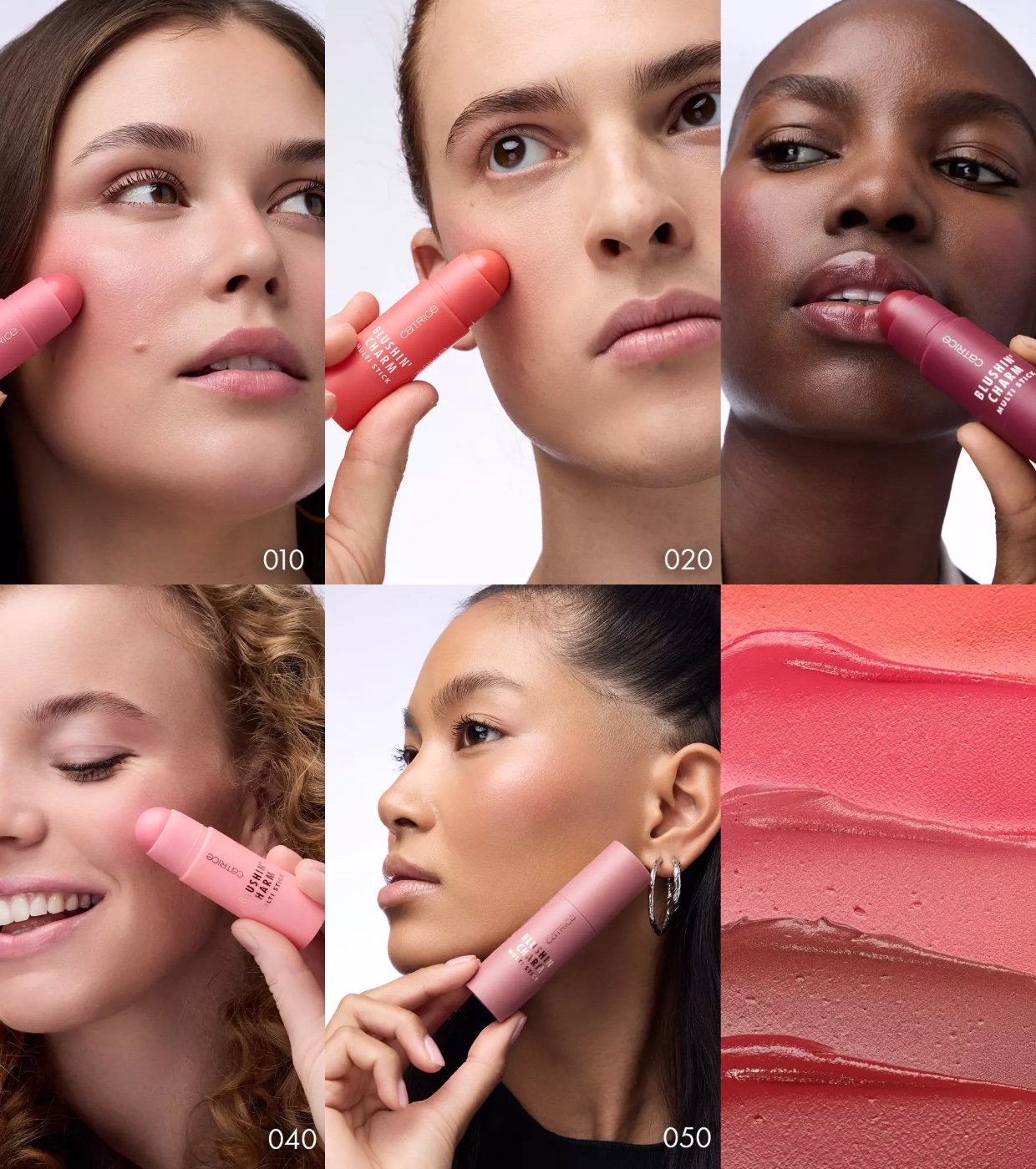 Sua textura cremosa, leve e não pegajosa permite uma aplicação suave e construível, ideal para obter desde um blush sutil até um efeito mais intenso e marcante.