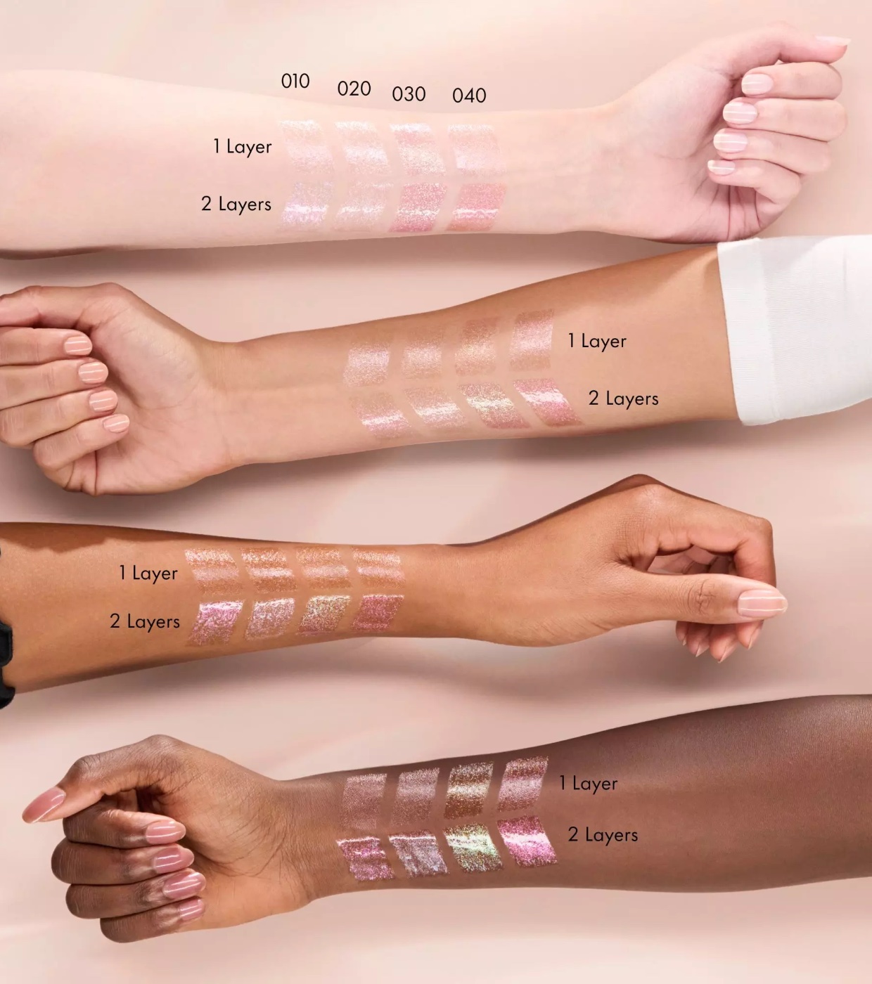 Sua fórmula não pegajosa e de longa duração proporciona um brilho multidimensional que capta a luz de qualquer ângulo, realçando a aparência dos lábios com um toque luminoso e radiante.