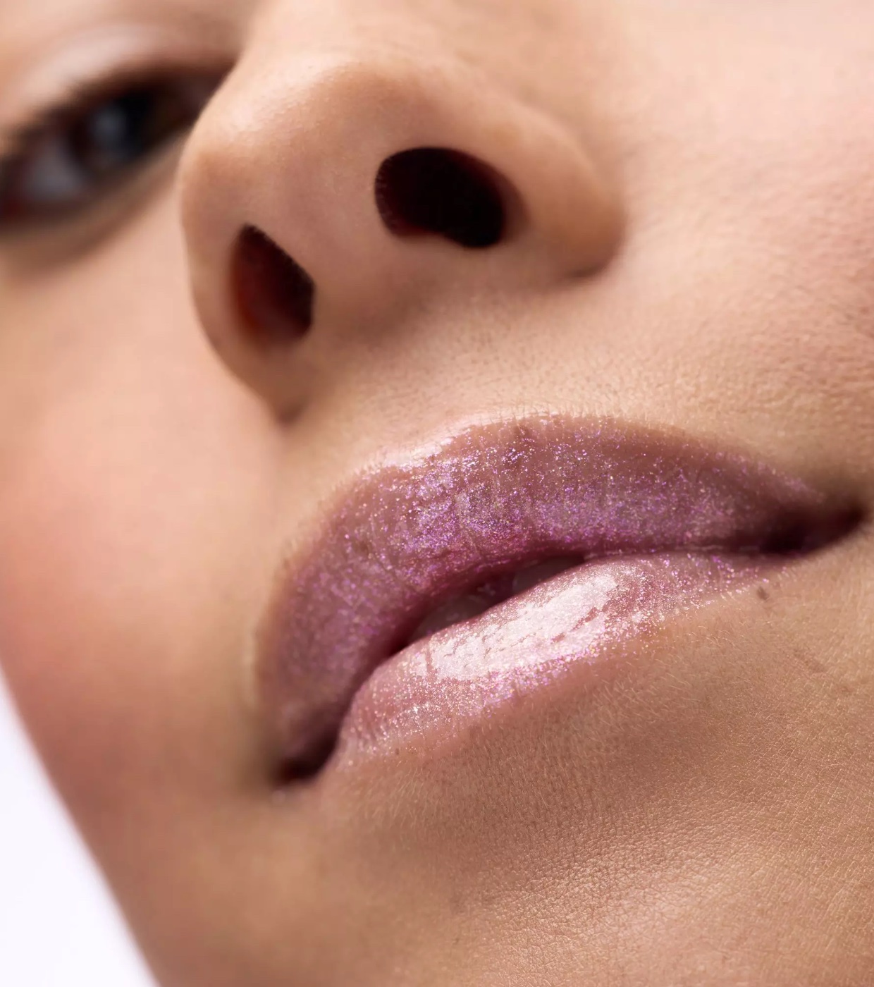 Sua base transparente enriquecida com partículas de glitter holográfico proporciona volume visual e um efeito brilhante e suculento, sem sensação pegajosa.