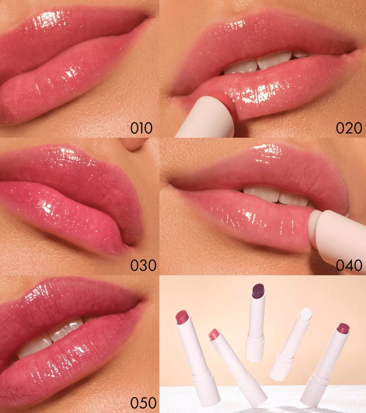 - Acabamento em gel brilhante que realça e suaviza os lábios.
