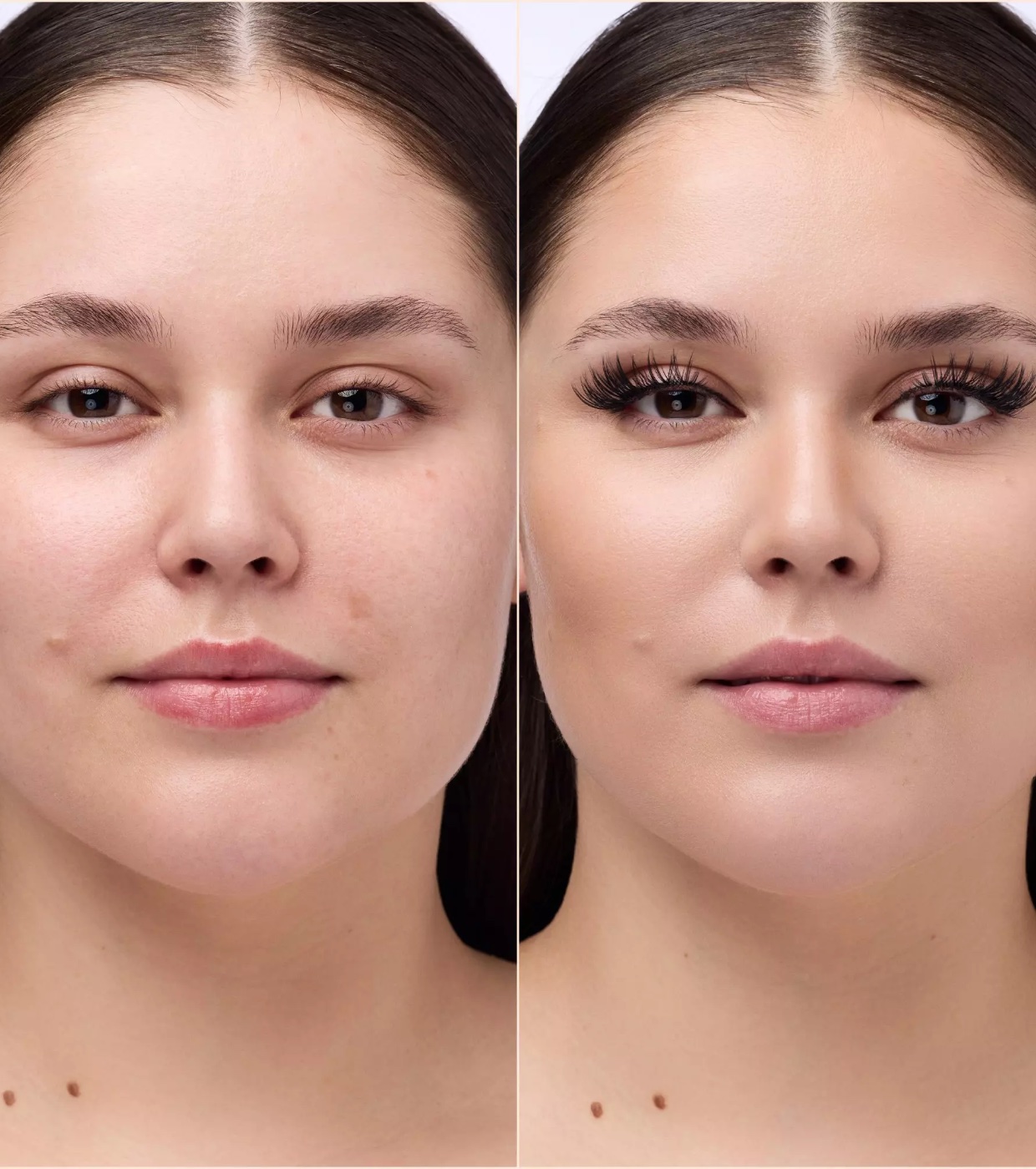 Antes de aplicar os cílios Faked Volume Cluster, aplique um pouco da cola para cílios inclusa na faixa dos cílios. Em seguida, coloque os cílios artificiais logo acima dos naturais e pressione-os levemente contra a pele até que fiquem do jeito que você quer. Deixe a cola secar e aproveite seu visual.